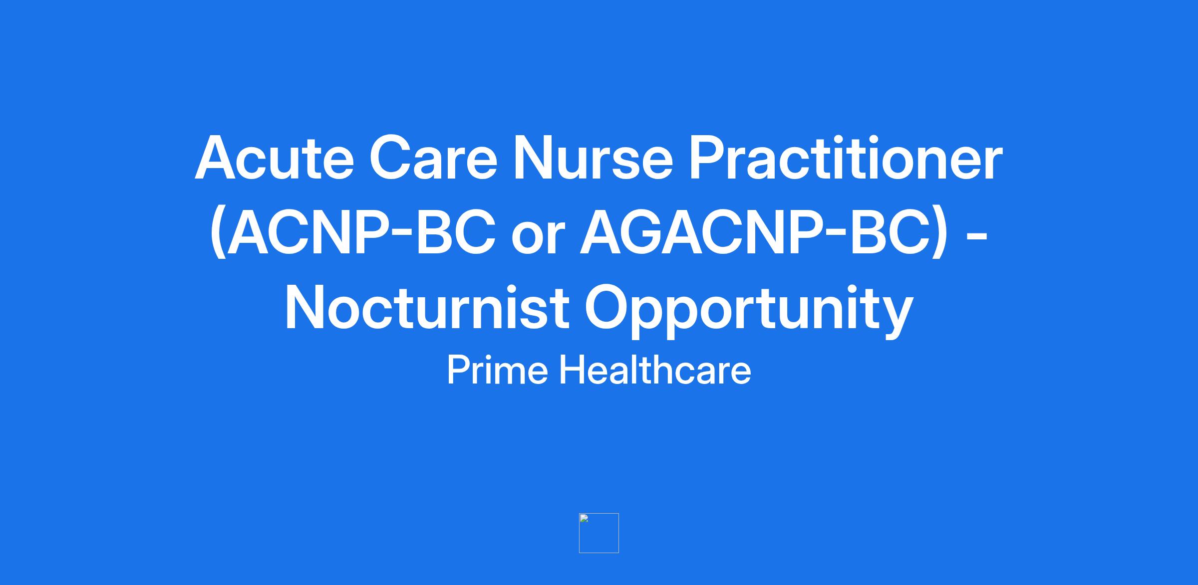 Acute Care Nurse Practitioner (ACNP-BC or AGACNP-BC) - Nocturnist Opportunity