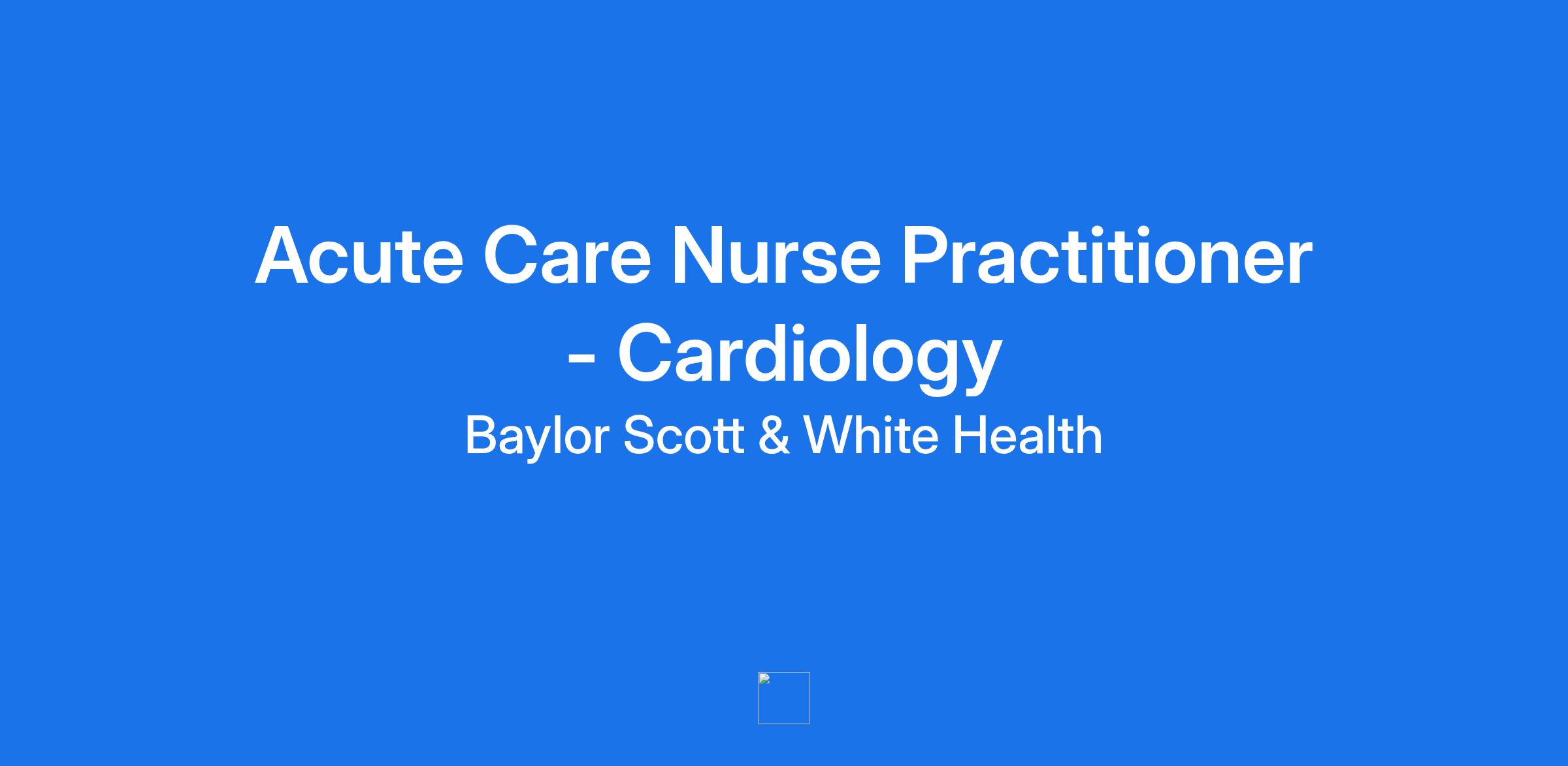 Acute Care Nurse Practitioner - Cardiology