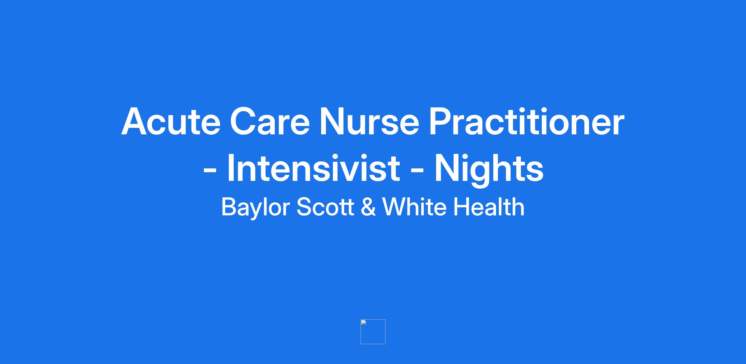 Acute Care Nurse Practitioner - Intensivist - Nights