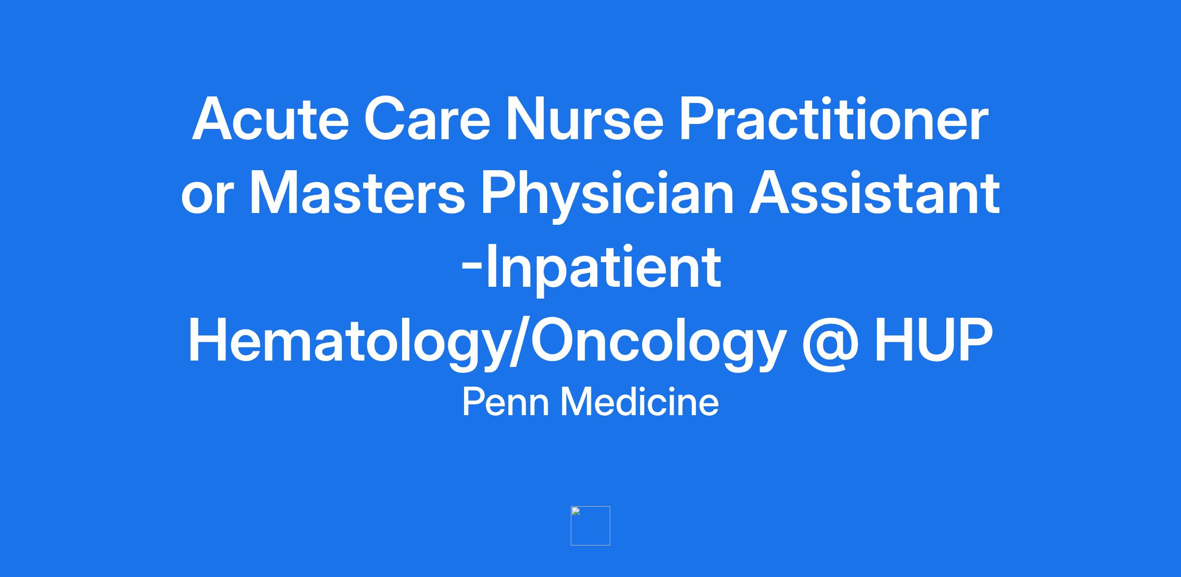 Acute Care Nurse Practitioner or Masters Physician Assistant -Inpatient Hematology/Oncology @ HUP
