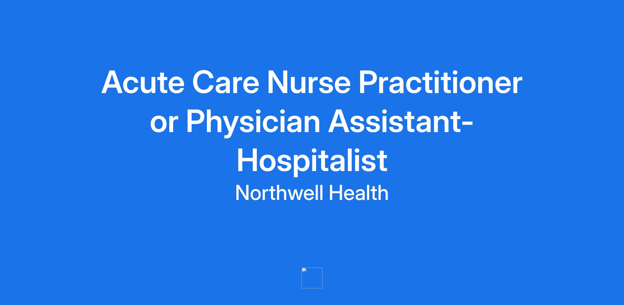 Acute Care Nurse Practitioner or Physician Assistant-Hospitalist