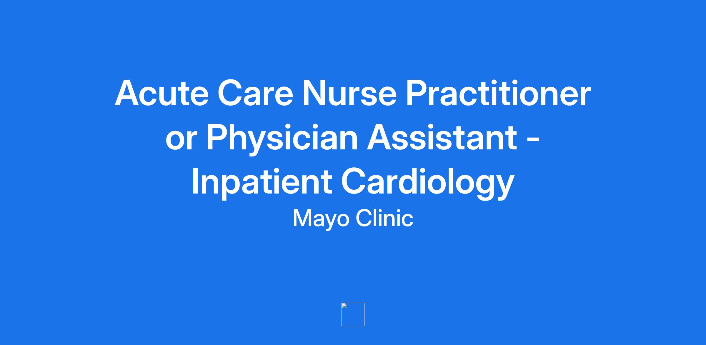 Acute Care Nurse Practitioner or Physician Assistant - Inpatient Cardiology