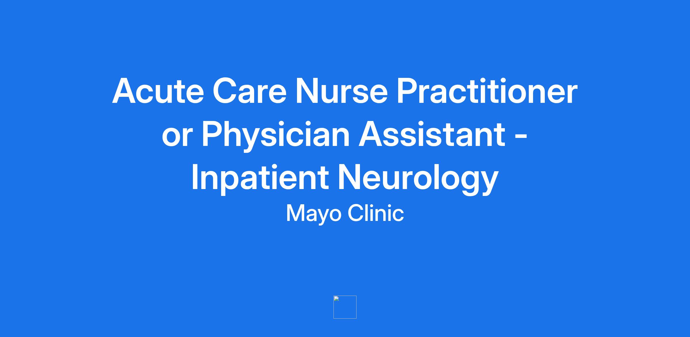 Acute Care Nurse Practitioner or Physician Assistant - Inpatient Neurology