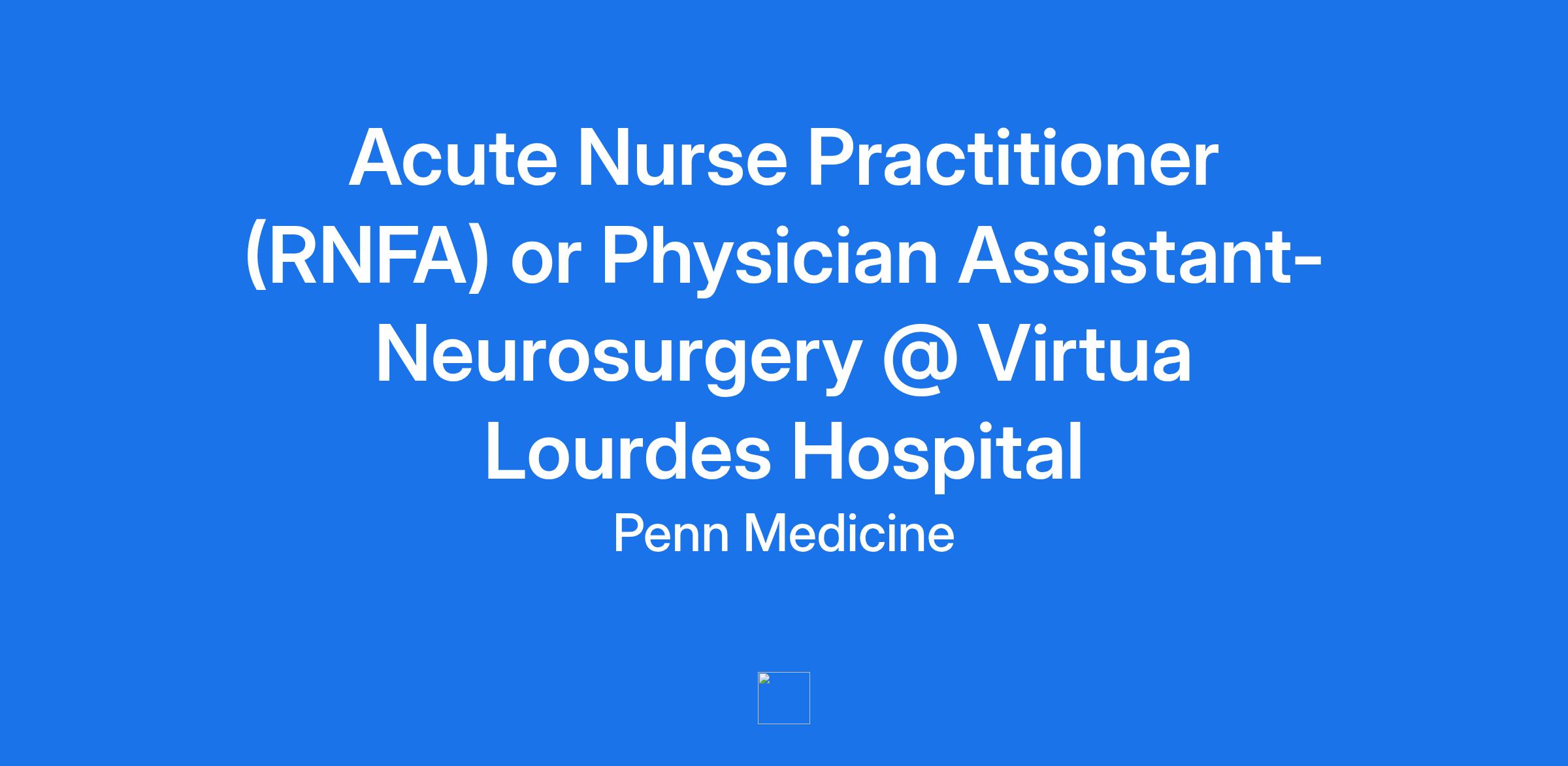 Acute Nurse Practitioner (RNFA) or Physician Assistant- Neurosurgery @ Virtua Lourdes Hospital