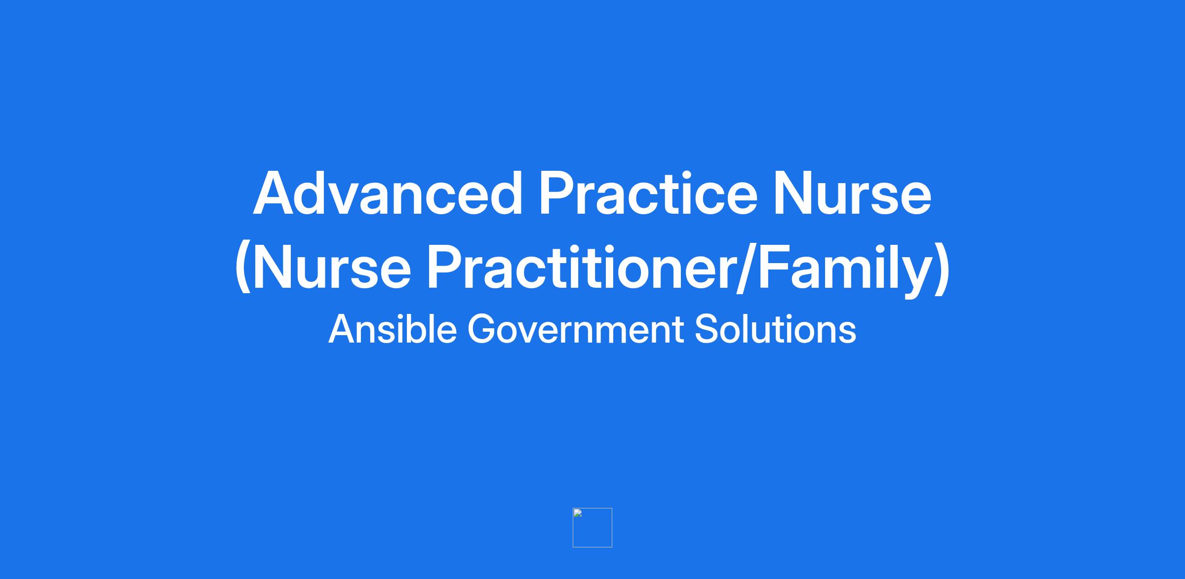 Ansible Government Solutions, LLC (Ansible) is currently seeking Advanced Practice Nurse (Nurse Practitioner/Family) to support the Durham VA Medical Center located at 508 Fulton St. Durham, NC 27705. If you accept employment with Ansible, you must also acknowledge that any assigned schedule is subject to change at the direction of either Ansible or its customers.