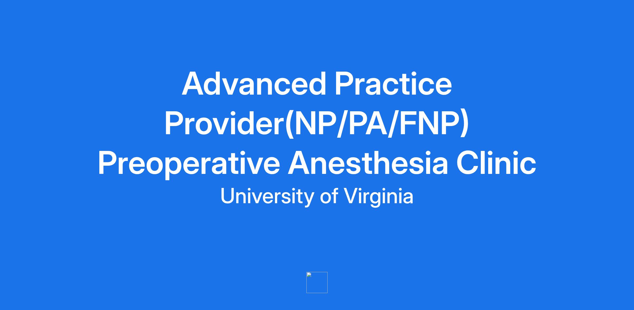 Advanced Practice Provider(NP/PA/FNP) Preoperative Anesthesia Clinic