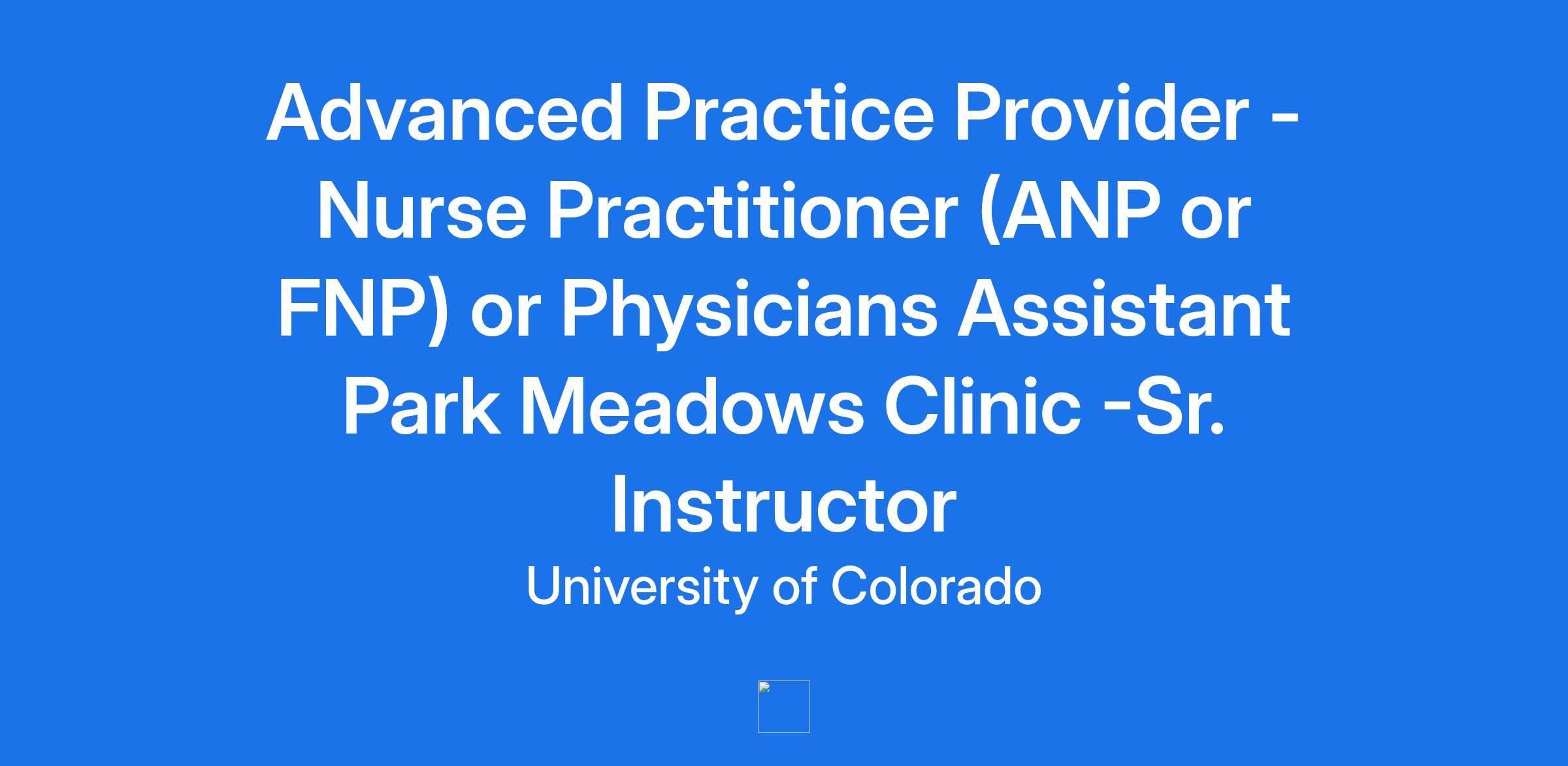 Advanced Practice Provider - Nurse Practitioner (ANP or FNP) or Physicians Assistant Park Meadows Clinic -Sr. Instructor