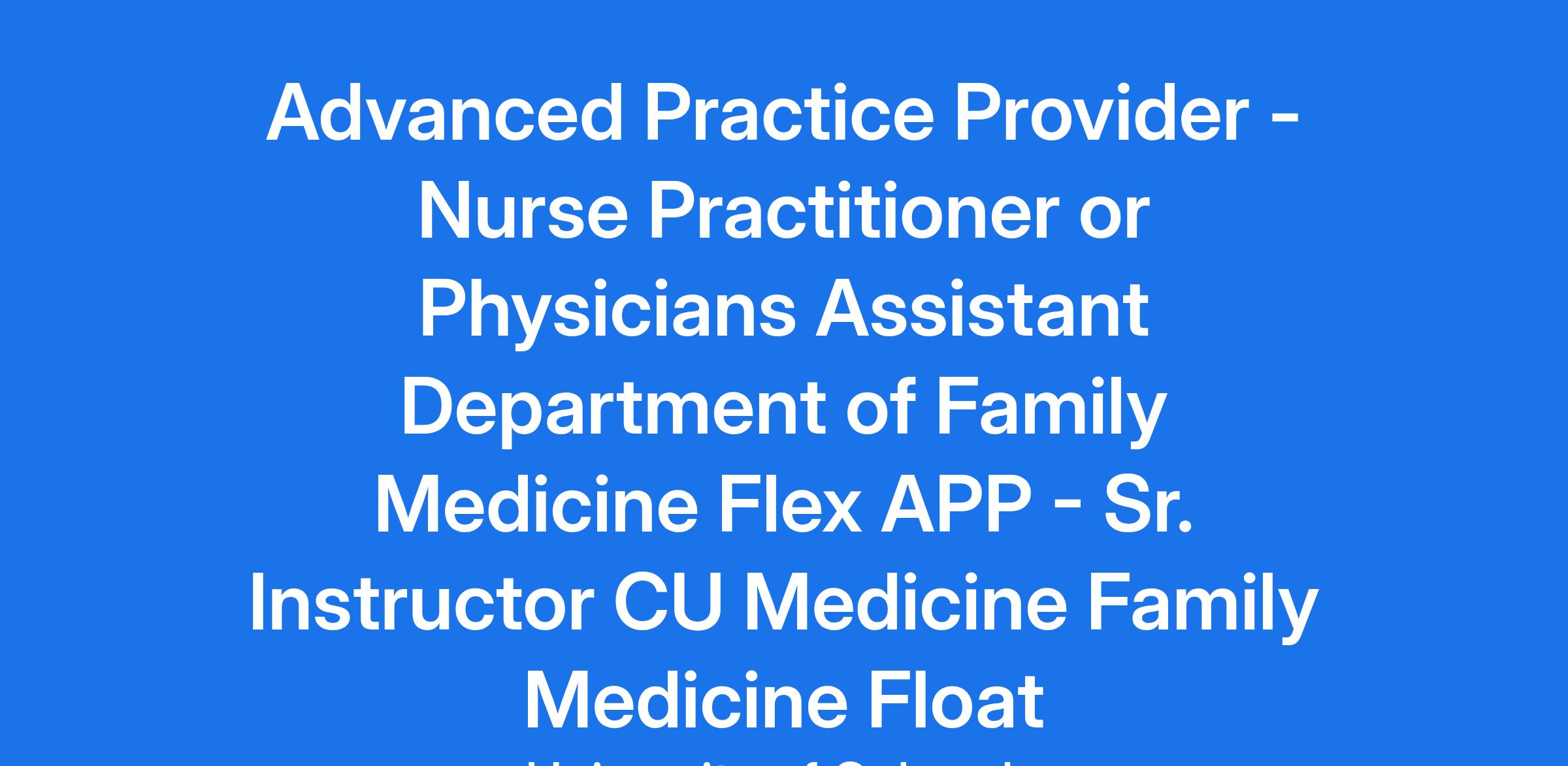 Advanced Practice Provider - Nurse Practitioner or Physicians Assistant Department of Family Medicine Flex APP - Sr. Instructor CU Medicine Family Medicine Float