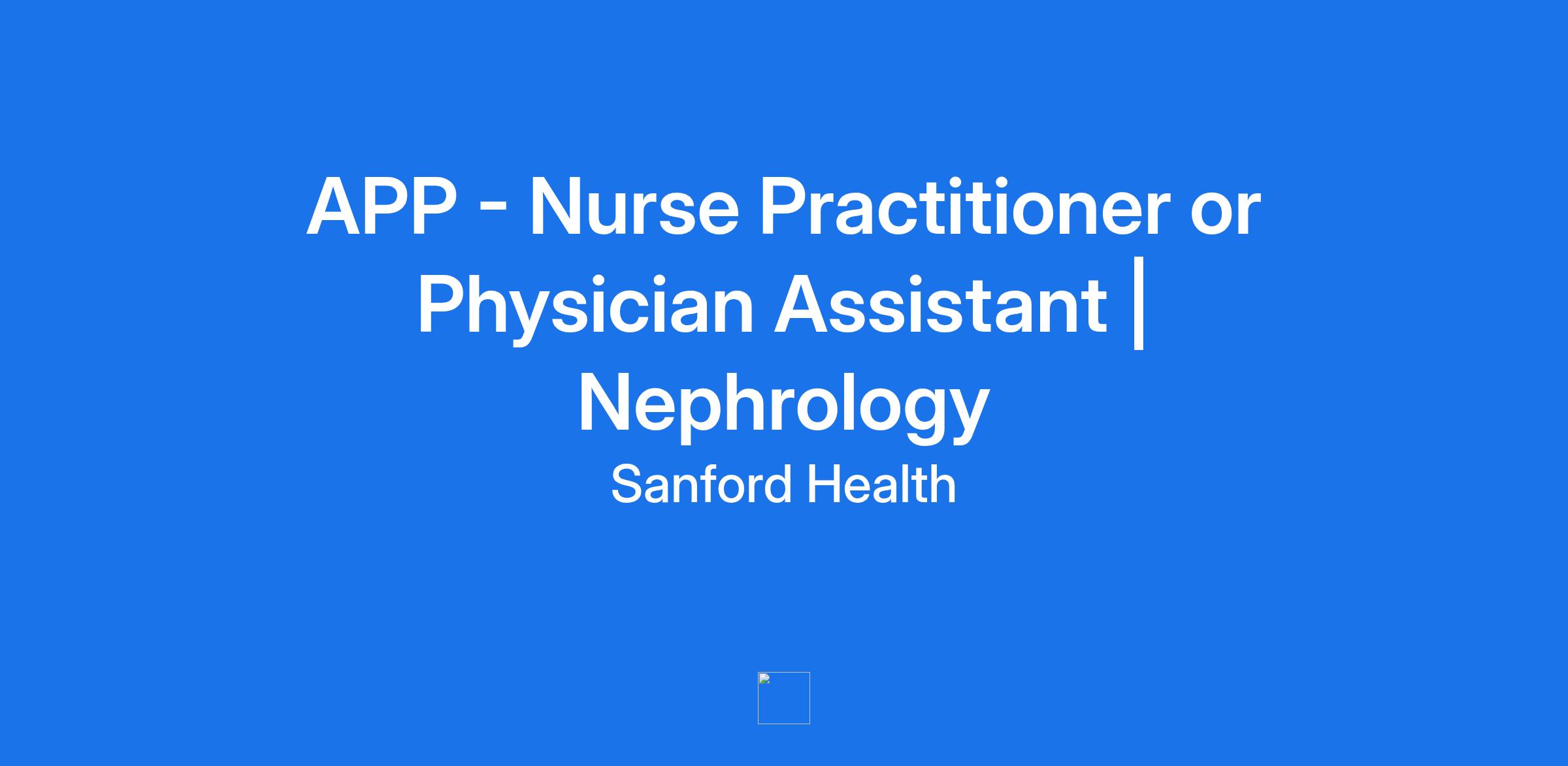 APP - Nurse Practitioner or Physician Assistant | Nephrology