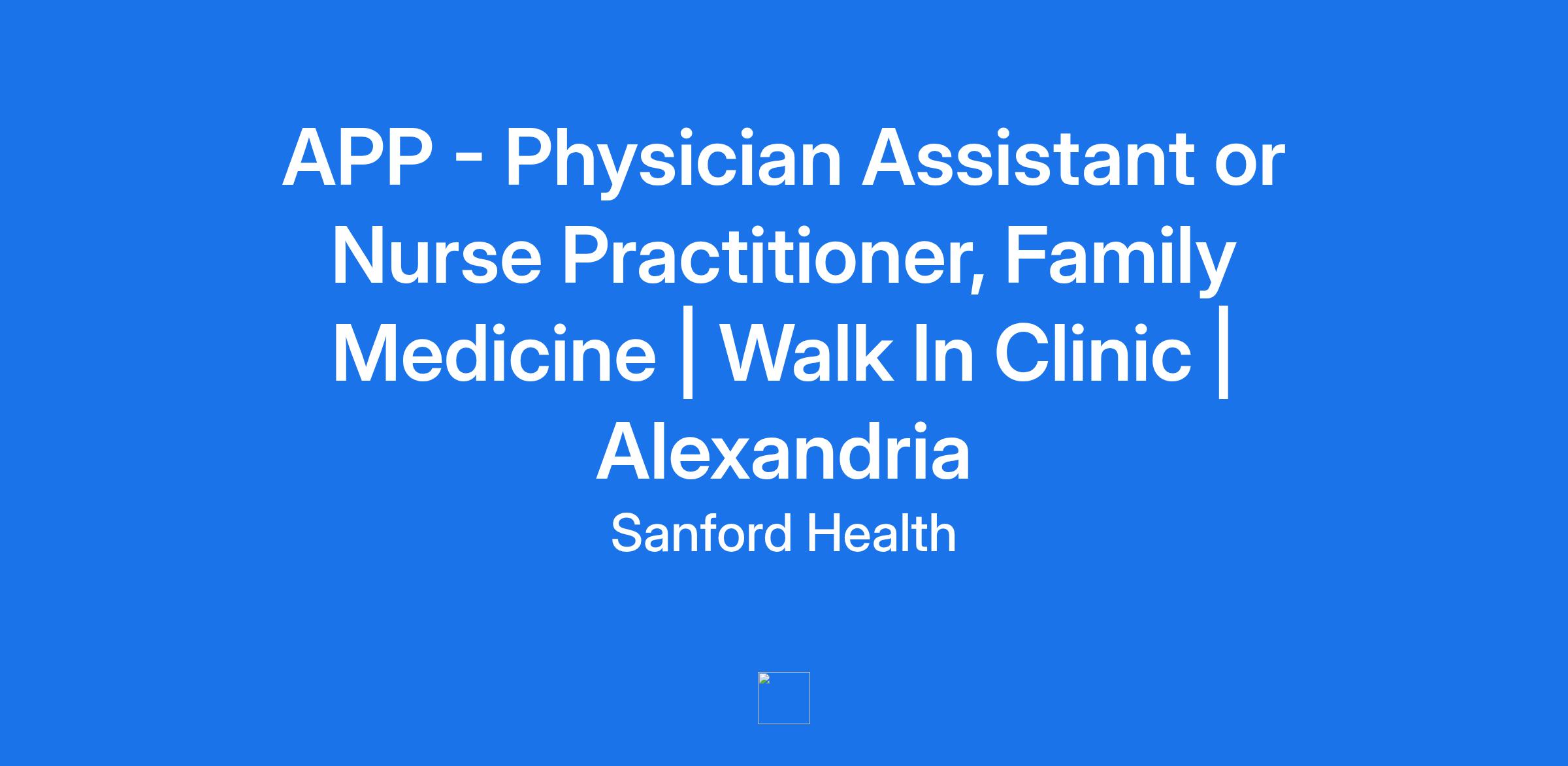 APP - Physician Assistant or Nurse Practitioner, Family Medicine | Walk In Clinic | Alexandria
