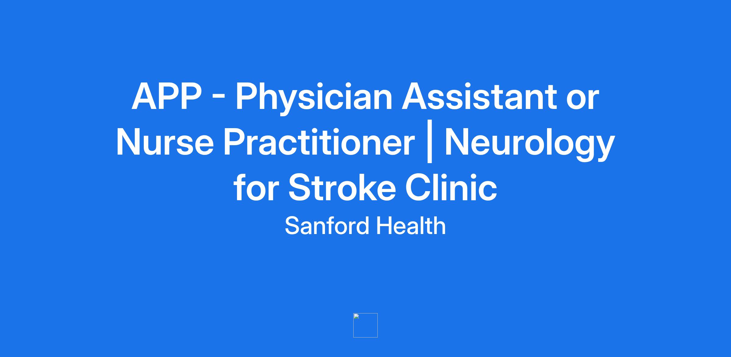 APP - Physician Assistant or Nurse Practitioner | Neurology for Stroke Clinic