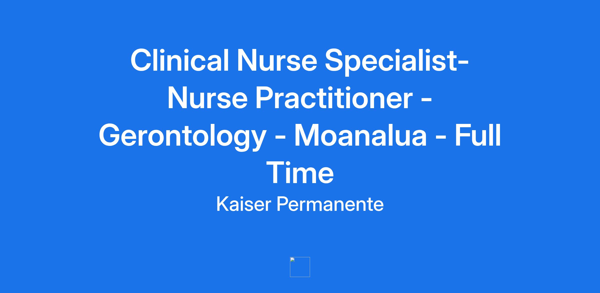 TITLE: Clinical Nurse Specialist- Nurse Practitioner - Gerontology - Moanalua - Full Time