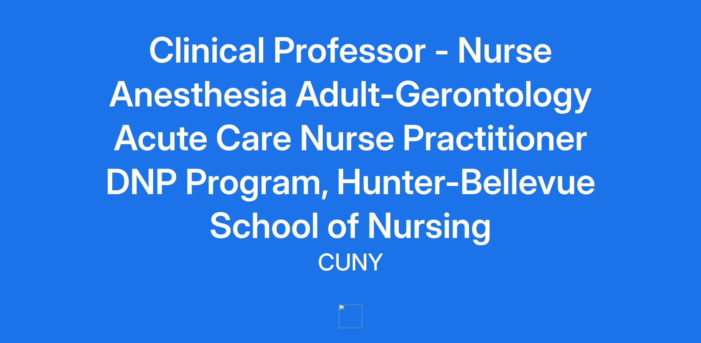 Clinical Professor - Nurse Anesthesia Adult-Gerontology Acute Care Nurse Practitioner DNP Program, Hunter-Bellevue School of Nursing