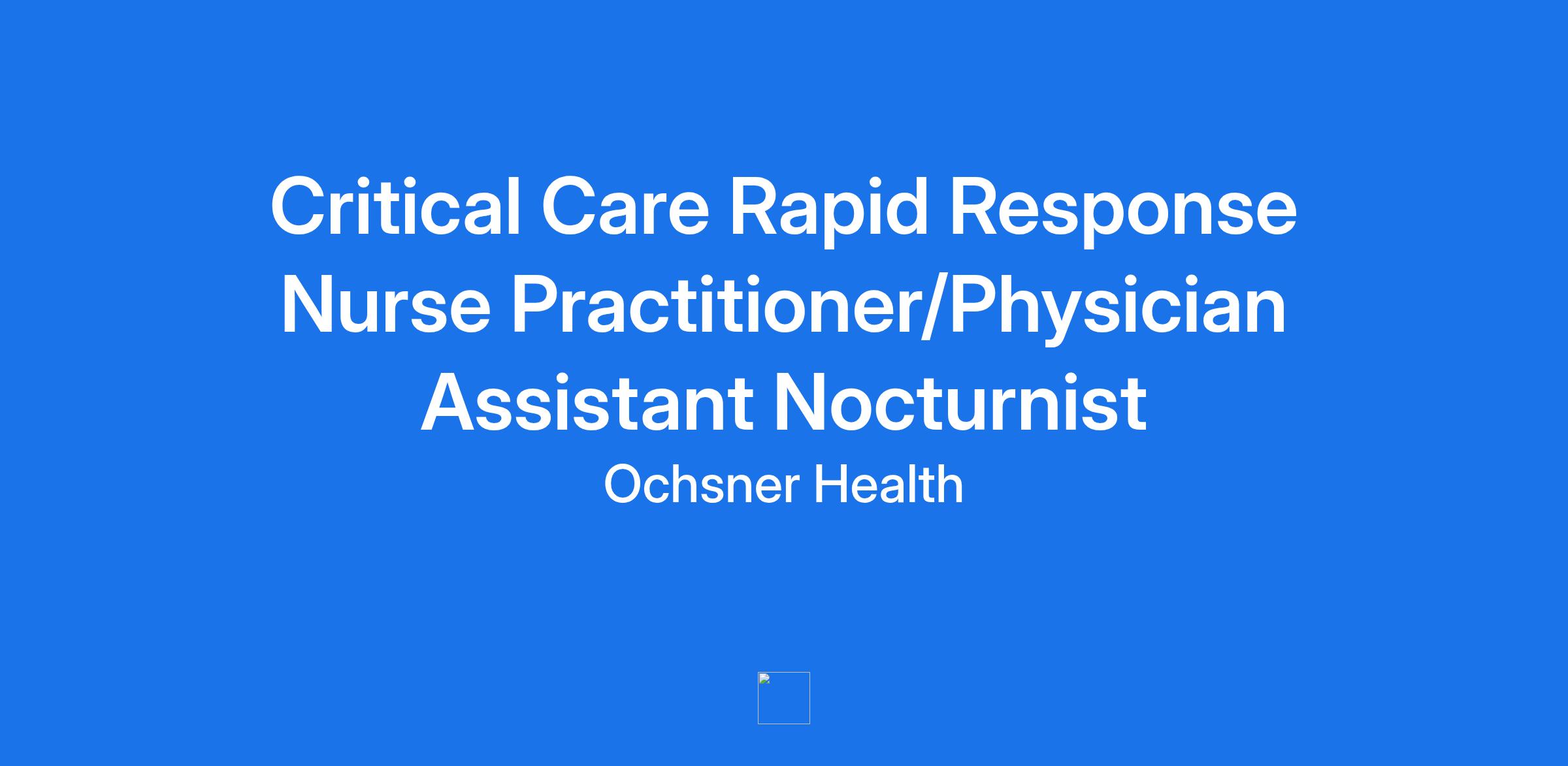 Critical Care Rapid Response Nurse Practitioner/Physician Assistant Nocturnist