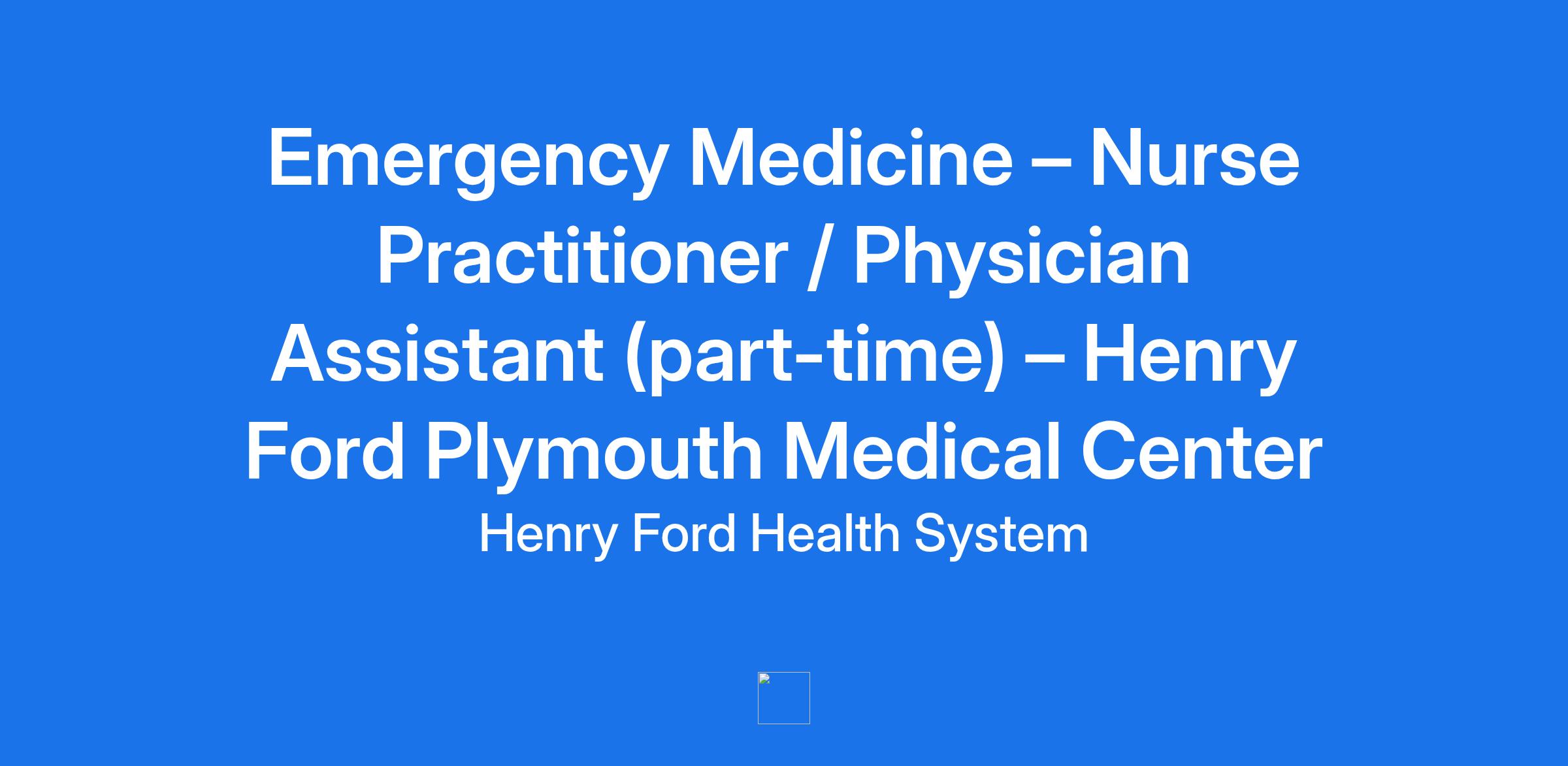Emergency Medicine – Nurse Practitioner / Physician Assistant (part-time) – Henry Ford Plymouth Medical Center