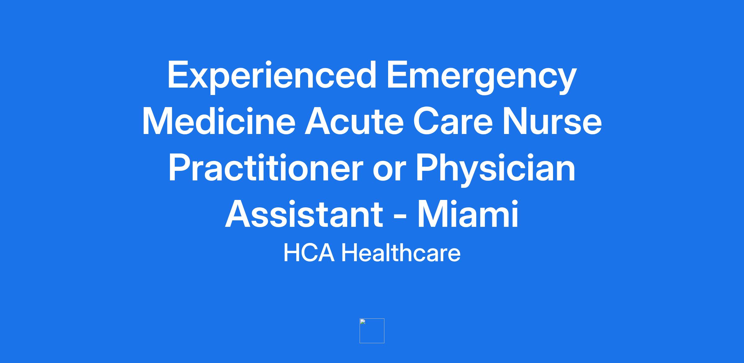 Experienced Emergency Medicine Acute Care Nurse Practitioner or Physician Assistant - Miami
