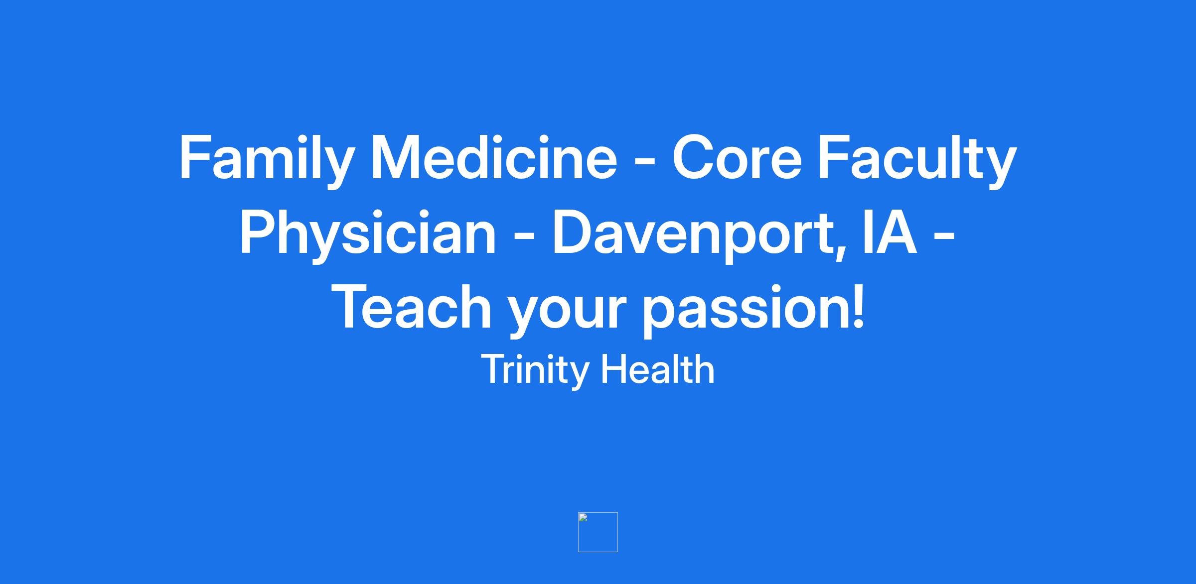 Family Medicine - Core Faculty Physician - Davenport, IA - Teach your passion!