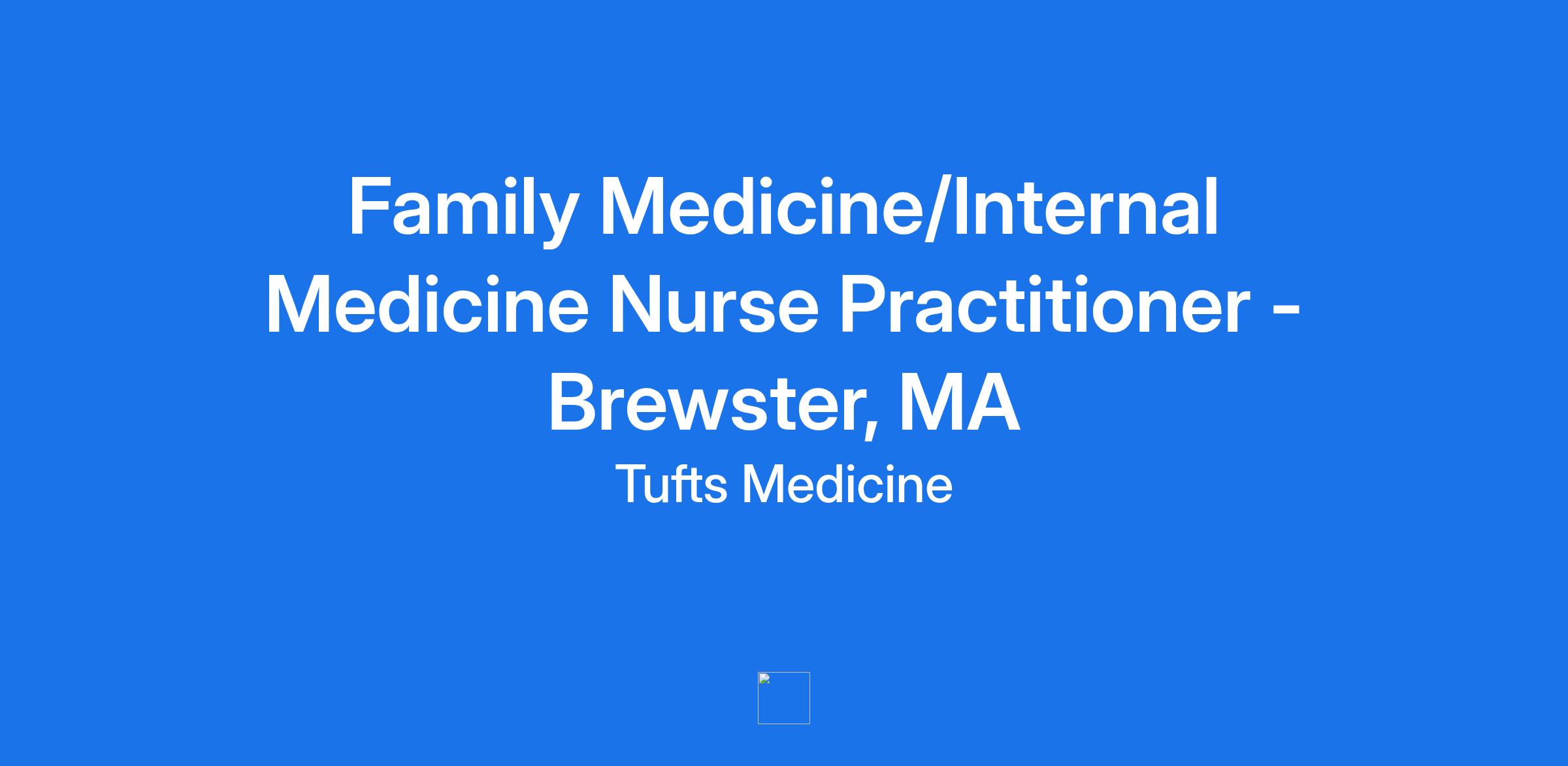 Brewster Medical Associates, a member of Tufts Medicine Integrated Network, is seeking an exceptional colleague to join our busy Primary Care practice in Brewster, MA as a **Family Medicine or Internal Medicine** **Nurse Practitioner** **.**