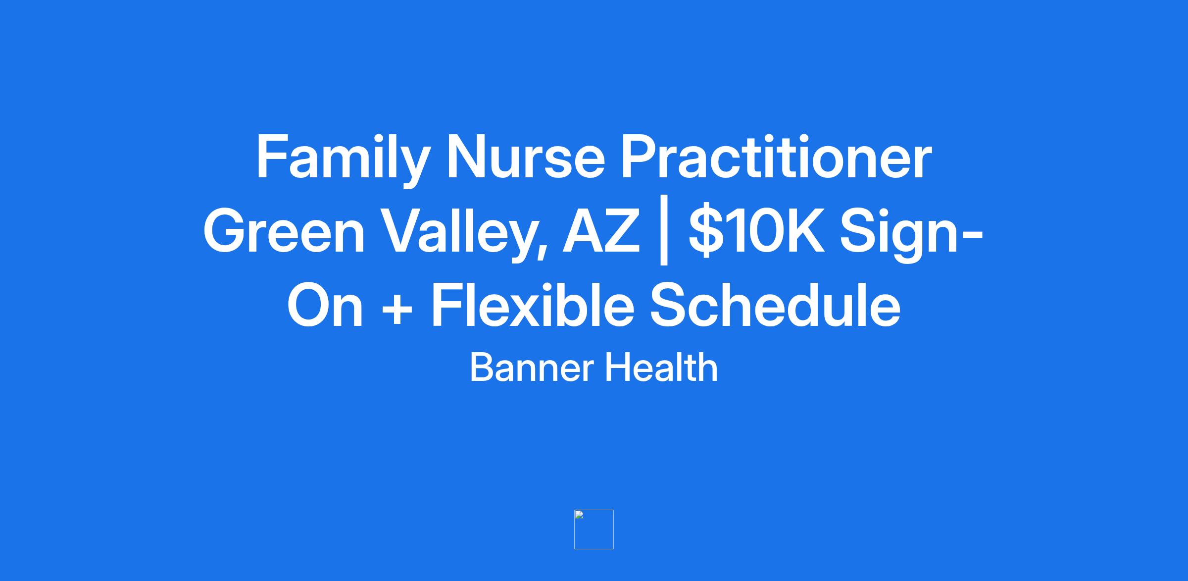 **Banner University Medical Group is seeking a compassionate and experienced Family Nurse Practitioner to join our growing Community Clinic Team in Green Valley, AZjust 20 minutes south of Tucson!** This is a rare opportunity to enjoy a **flexible schedule with excellent work-life balance, plus a $10,000 sign-on bonus** all while making a real impact on patient care in a collaborative and patient-focused setting.