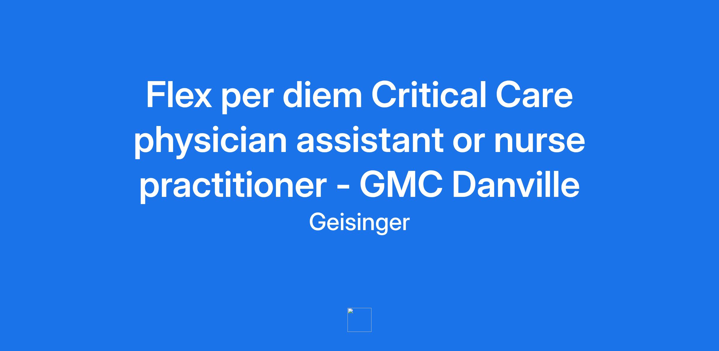 Flex per diem Critical Care physician assistant or nurse practitioner - GMC Danville