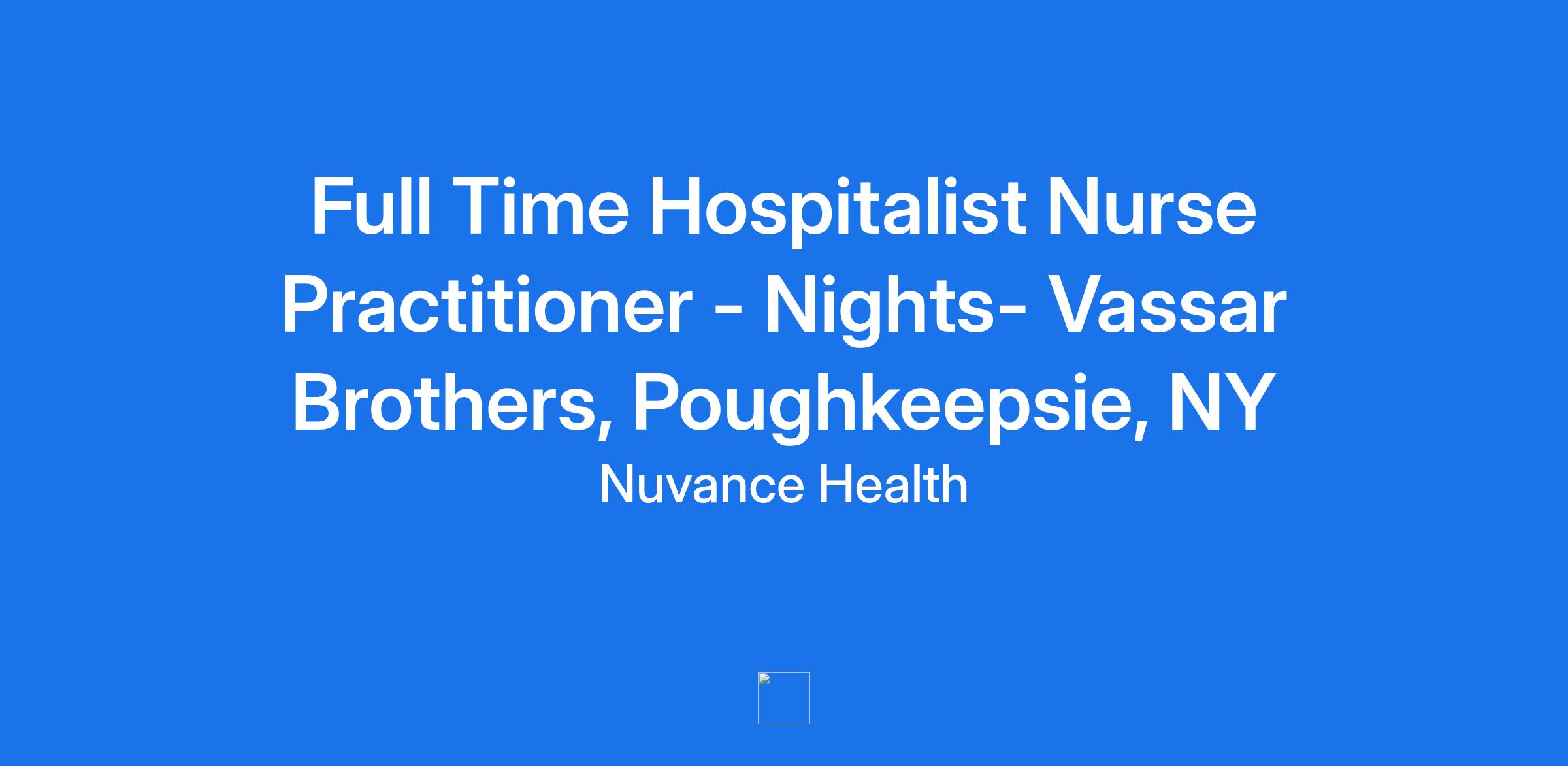 Full Time Hospitalist Nurse Practitioner - Nights- Vassar Brothers, Poughkeepsie, NY