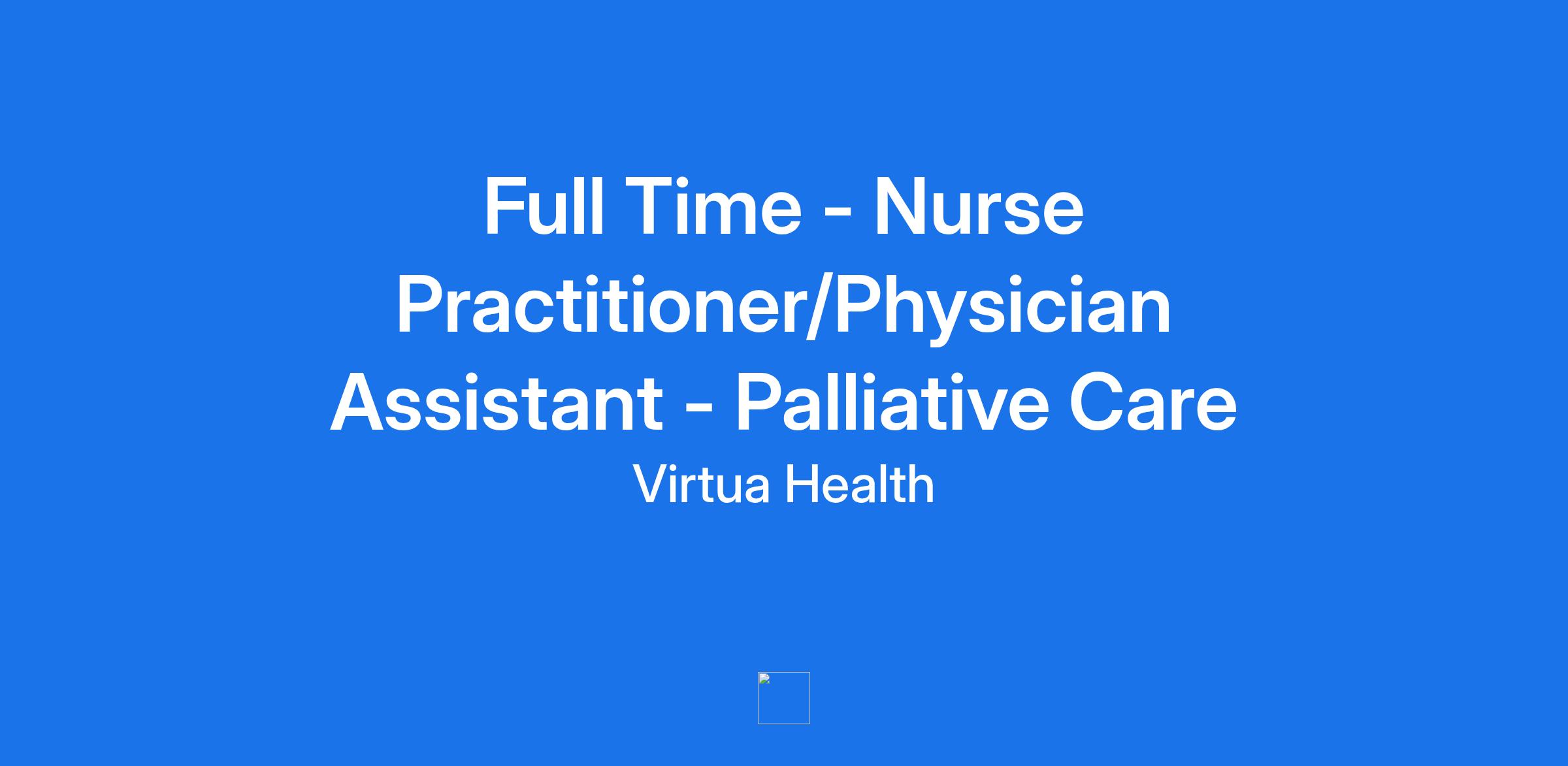 Full Time - Nurse Practitioner/Physician Assistant - Palliative Care