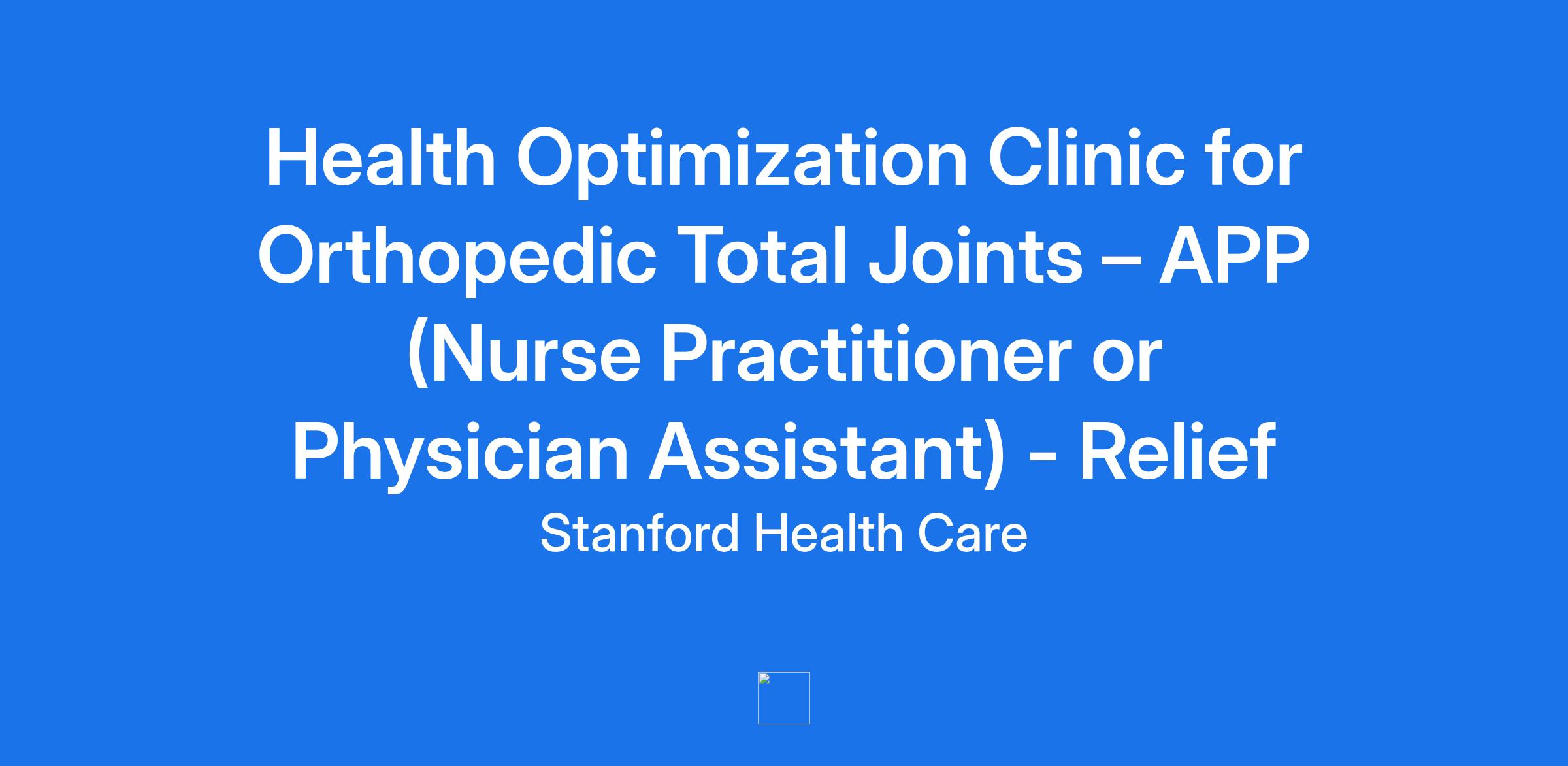 Health Optimization Clinic for Orthopedic Total Joints – APP (Nurse Practitioner or Physician Assistant) - Relief
