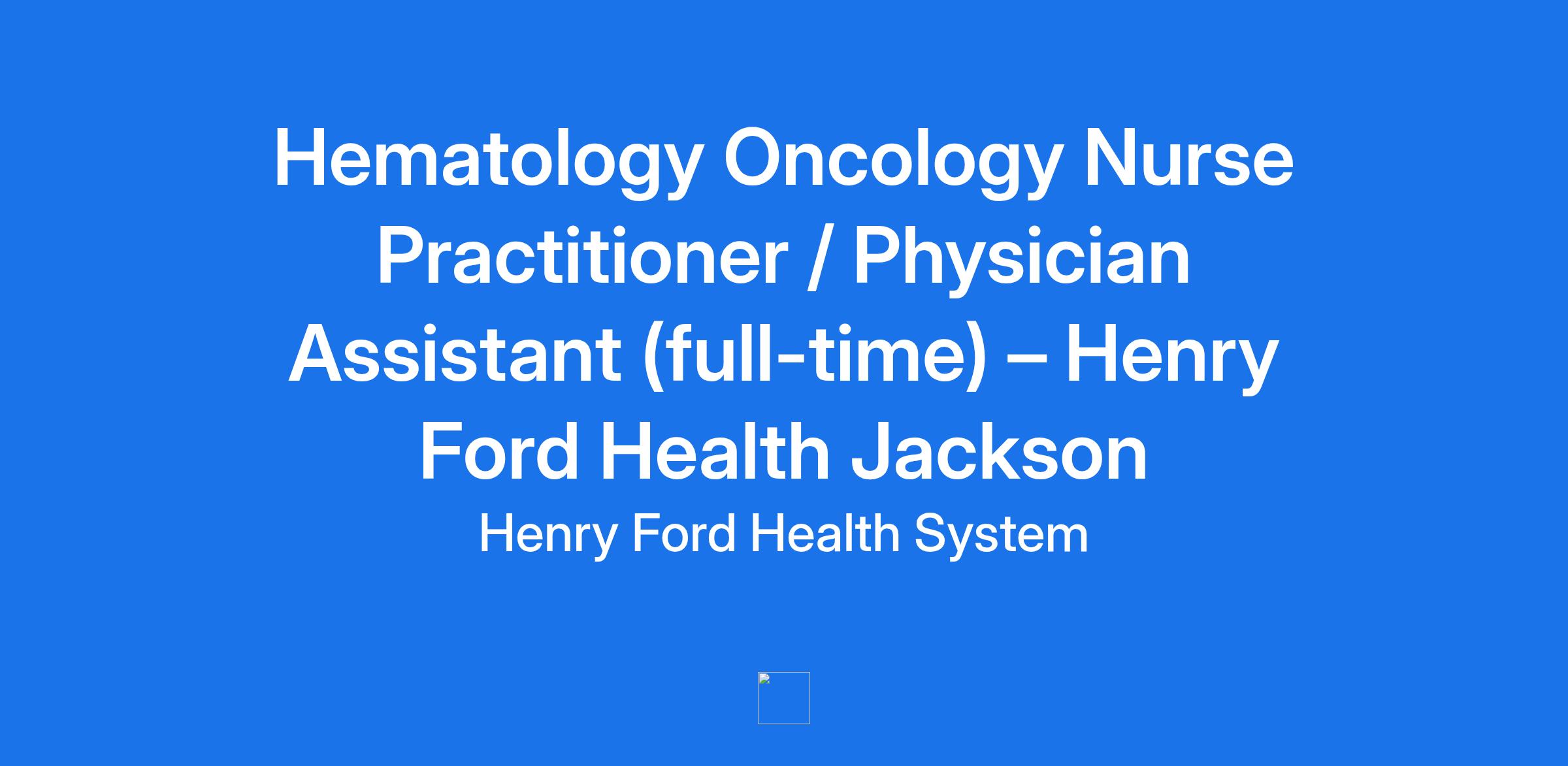 Hematology Oncology Nurse Practitioner / Physician Assistant (full-time) – Henry Ford Health Jackson