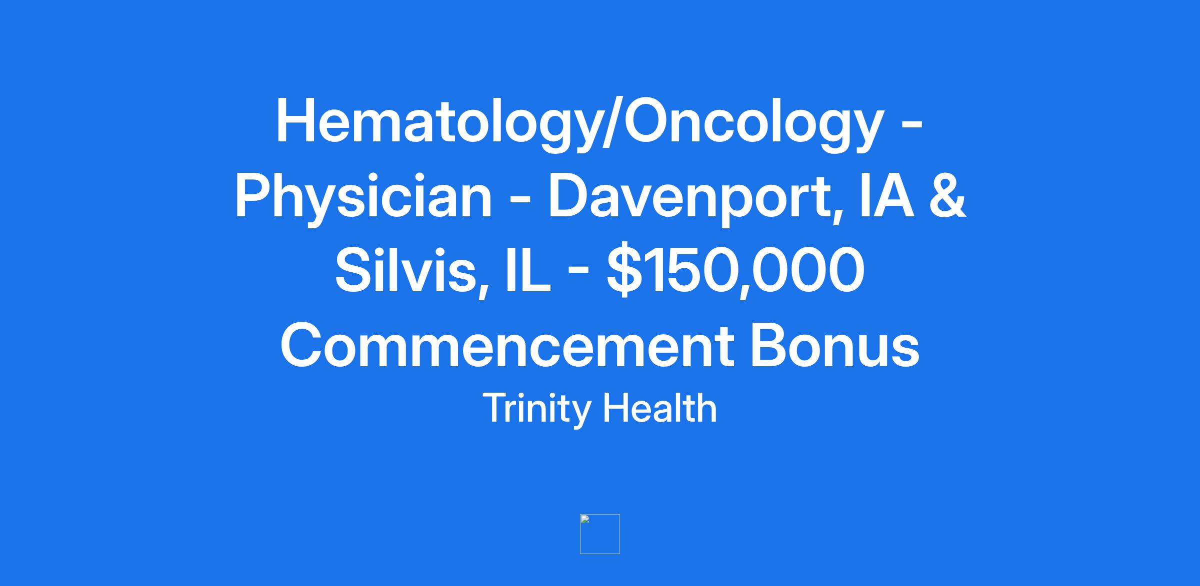 Hematology/Oncology - Physician - Davenport, IA & Silvis, IL - $150,000 Commencement Bonus