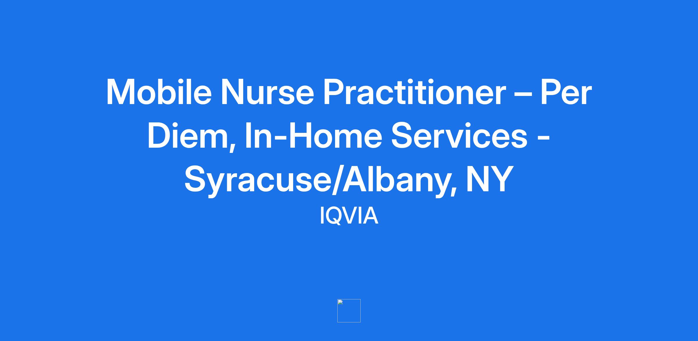 Mobile Nurse Practitioner – Per Diem, In-Home Services - Syracuse/Albany, NY