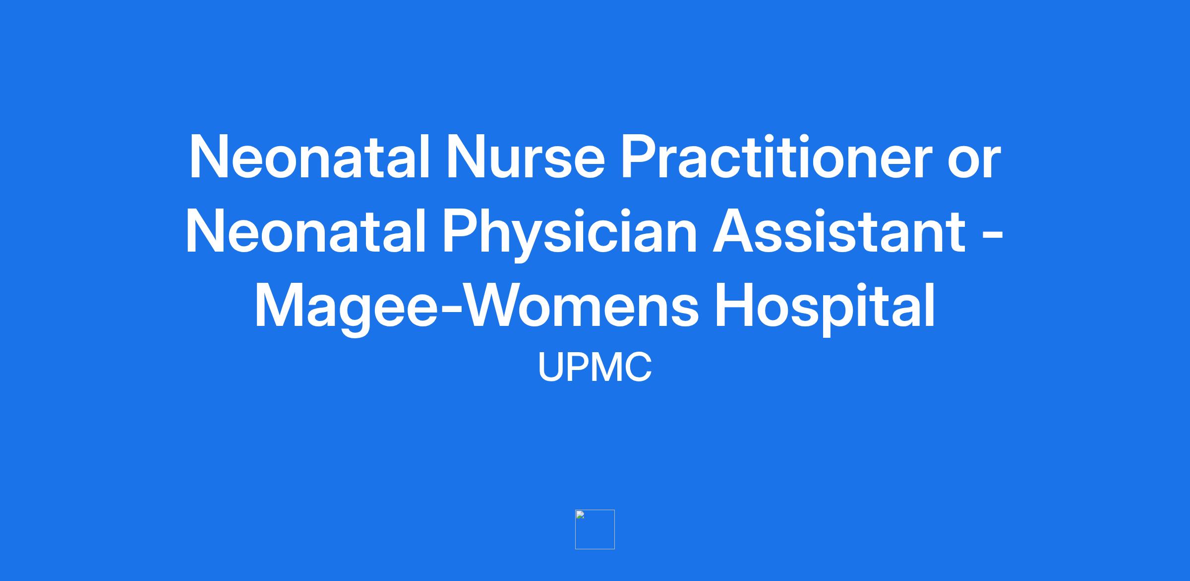 Neonatal Nurse Practitioner or Neonatal Physician Assistant - Magee-Womens Hospital