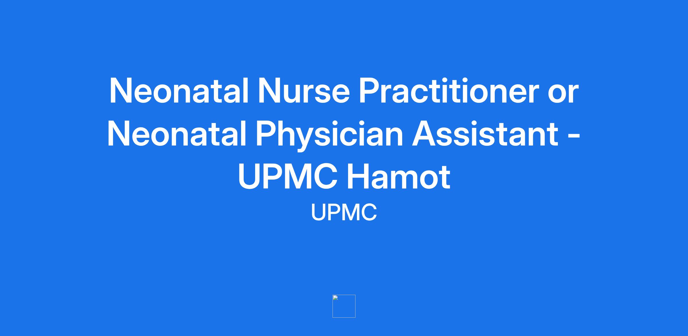 Neonatal Nurse Practitioner or Neonatal Physician Assistant - UPMC Hamot