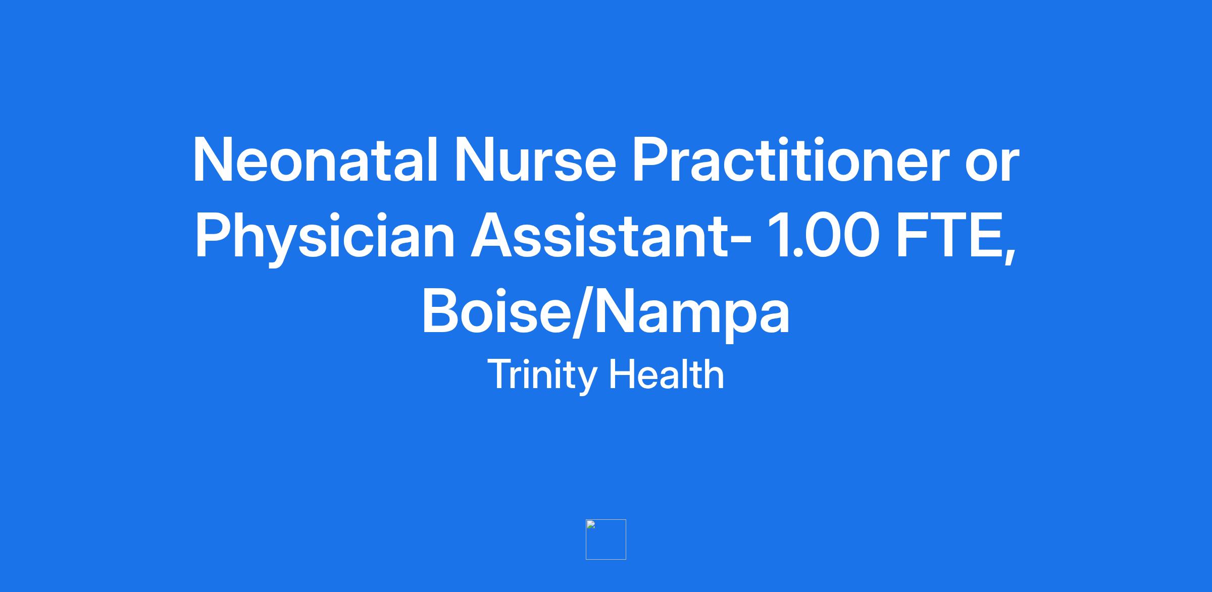 Neonatal Nurse Practitioner or Physician Assistant- 1.00 FTE, Boise/Nampa