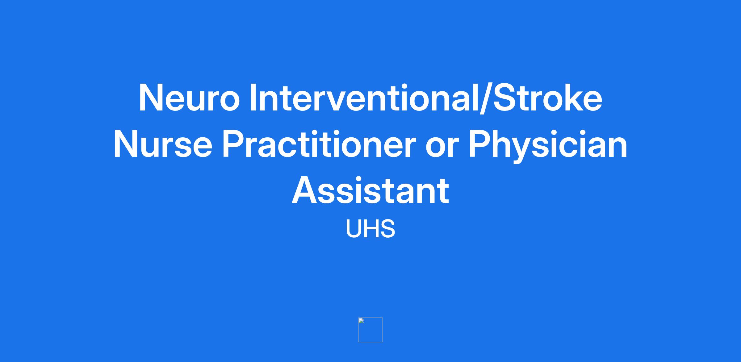 Neuro Interventional/Stroke Nurse Practitioner or Physician Assistant