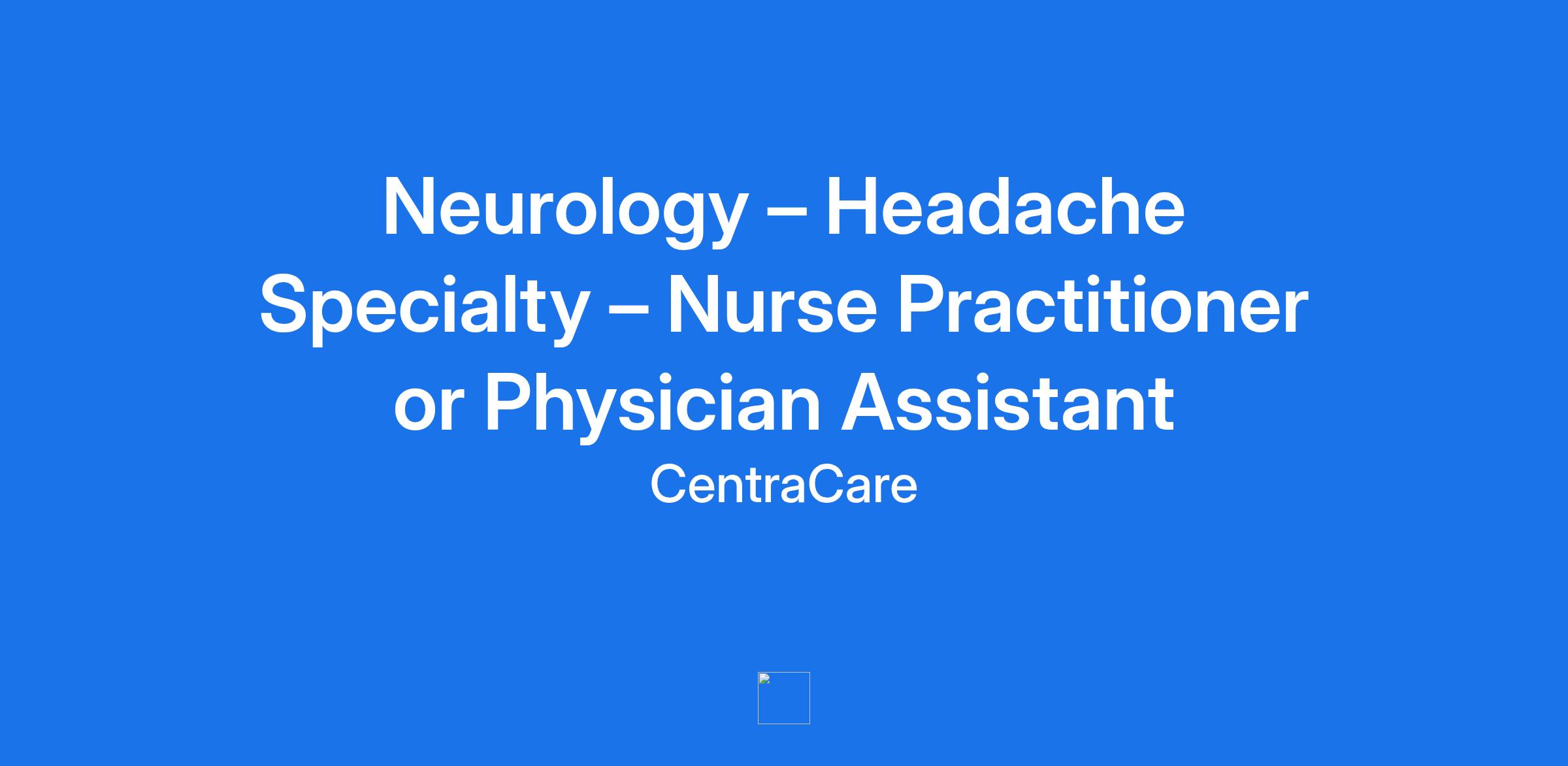 Neurology – Headache Specialty – Nurse Practitioner or Physician Assistant