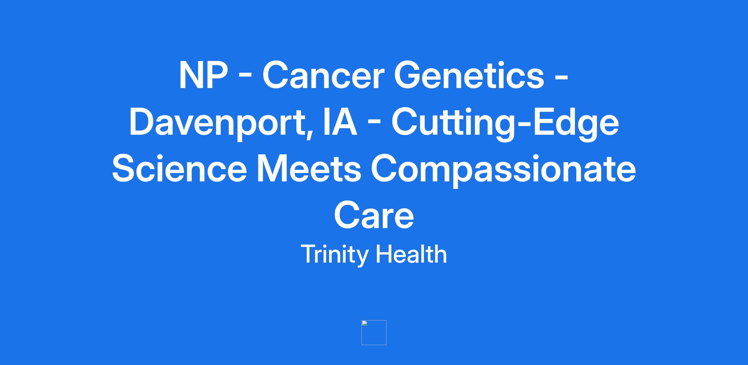 NP - Cancer Genetics - Davenport, IA - Cutting-Edge Science Meets Compassionate Care