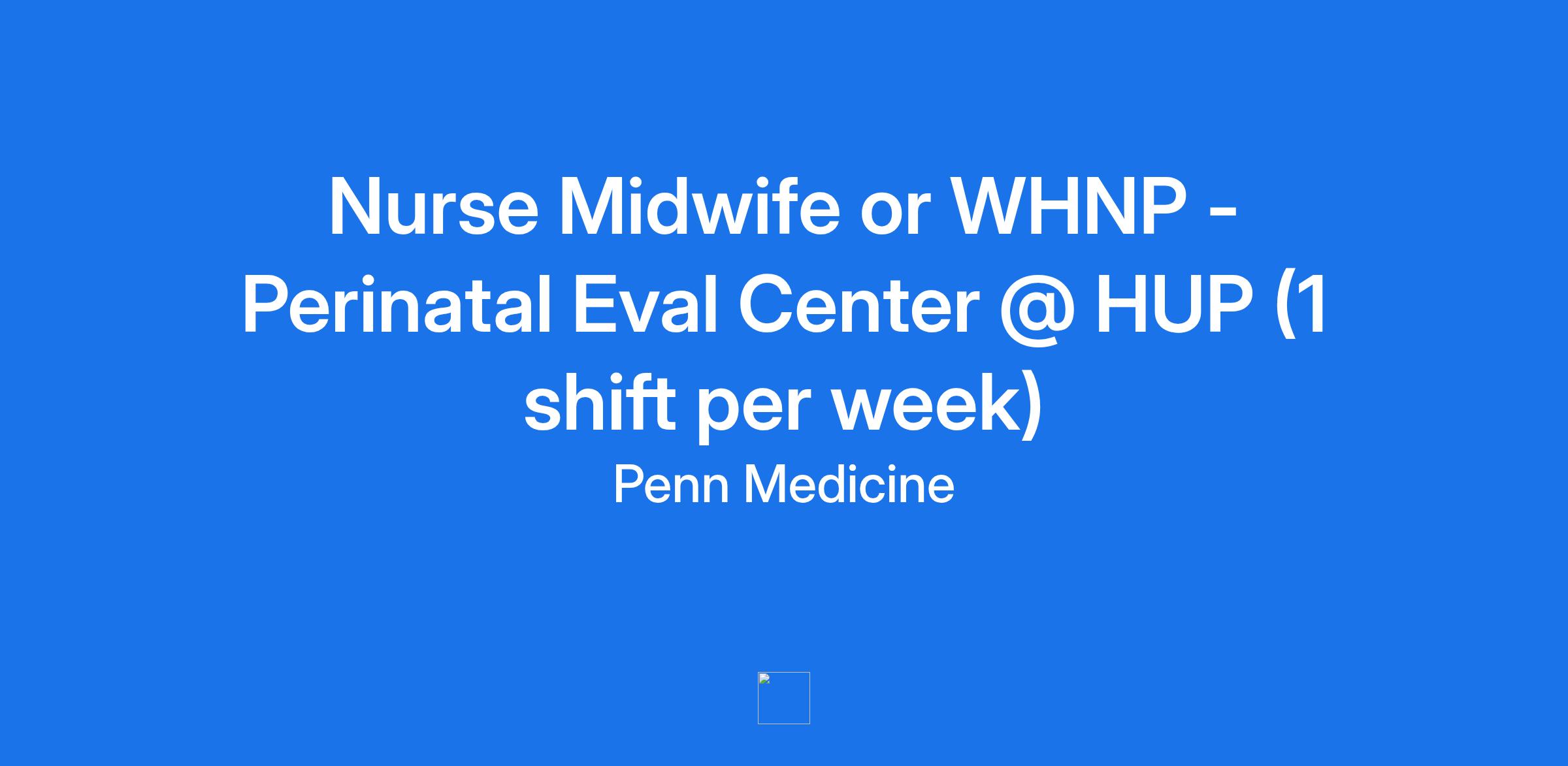 Nurse Midwife or WHNP - Perinatal Eval Center @ HUP (1 shift per week)