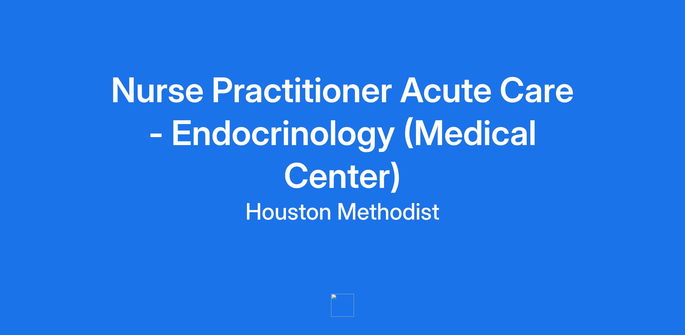 Nurse Practitioner Acute Care - Endocrinology (Medical Center)