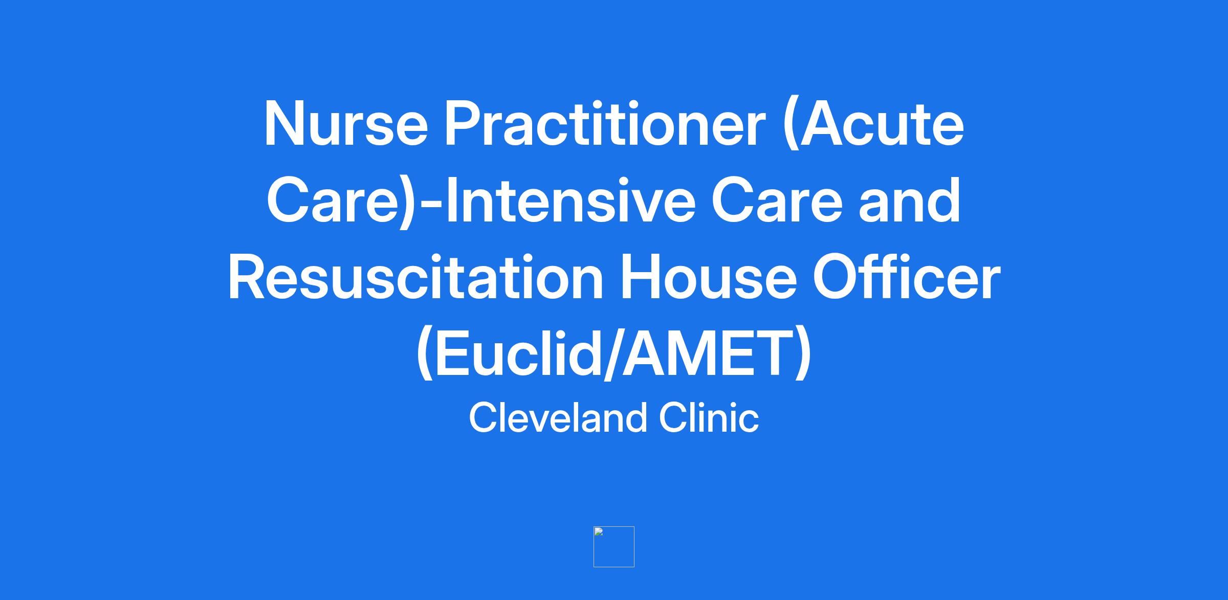 Nurse Practitioner (Acute Care)-Intensive Care and Resuscitation House Officer (Euclid/AMET)