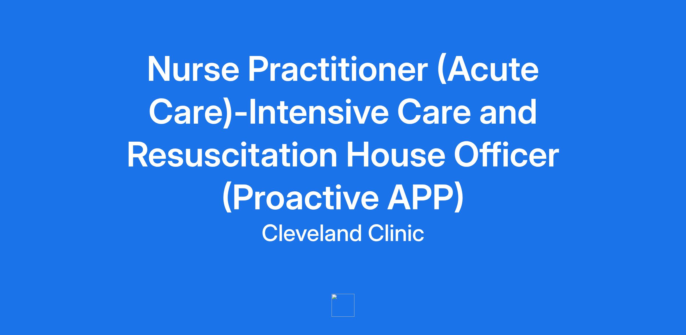 Nurse Practitioner (Acute Care)-Intensive Care and Resuscitation House Officer (Proactive APP)