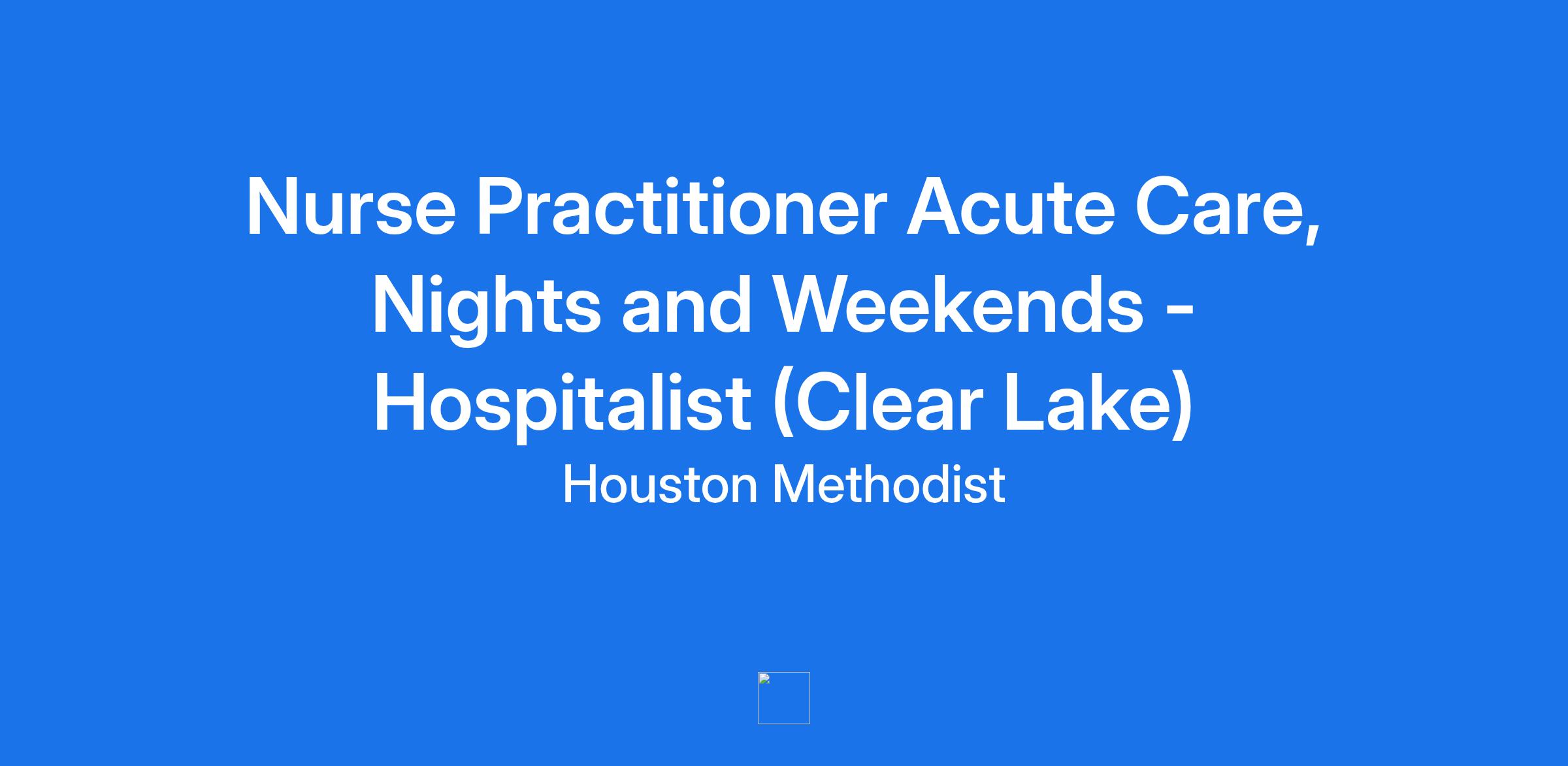 Nurse Practitioner Acute Care, Nights and Weekends - Hospitalist (Clear Lake)