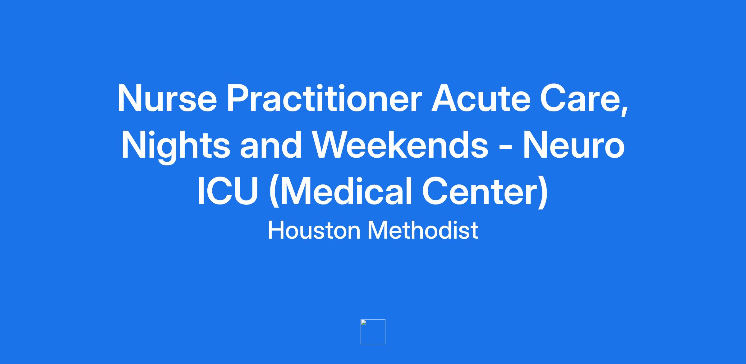 Nurse Practitioner Acute Care, Nights and Weekends - Neuro ICU (Medical Center)