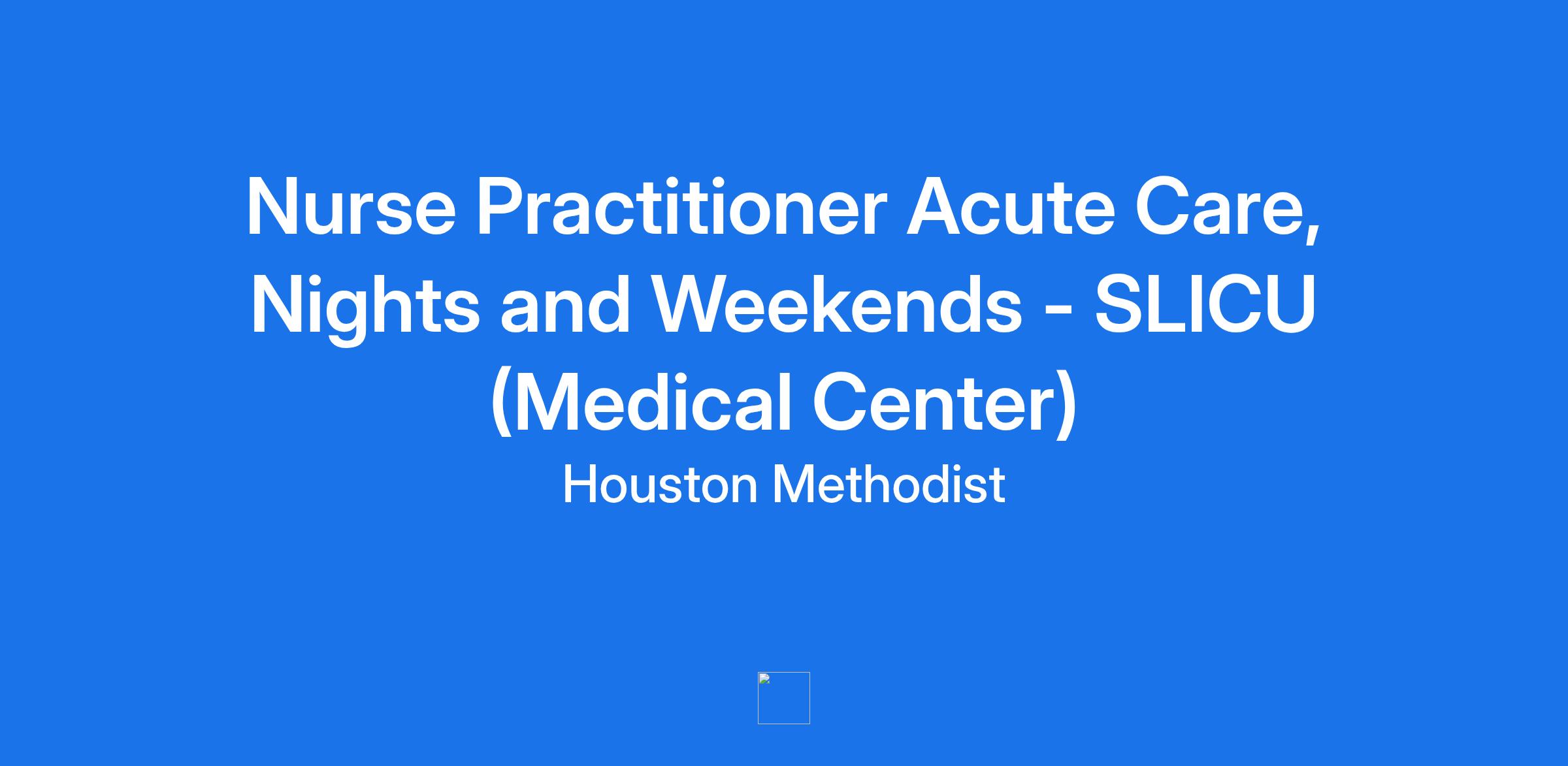 Nurse Practitioner Acute Care, Nights and Weekends - SLICU (Medical Center)