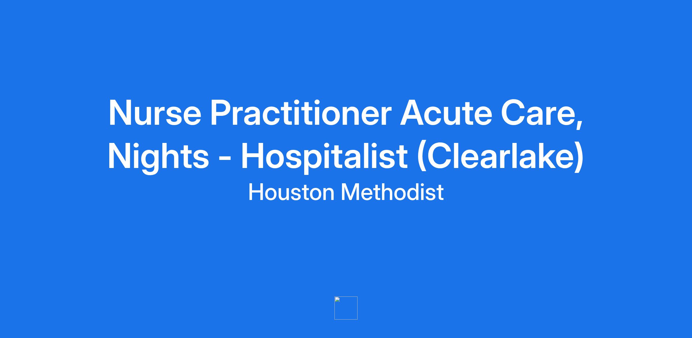 Nurse Practitioner Acute Care, Nights - Hospitalist (Clearlake)