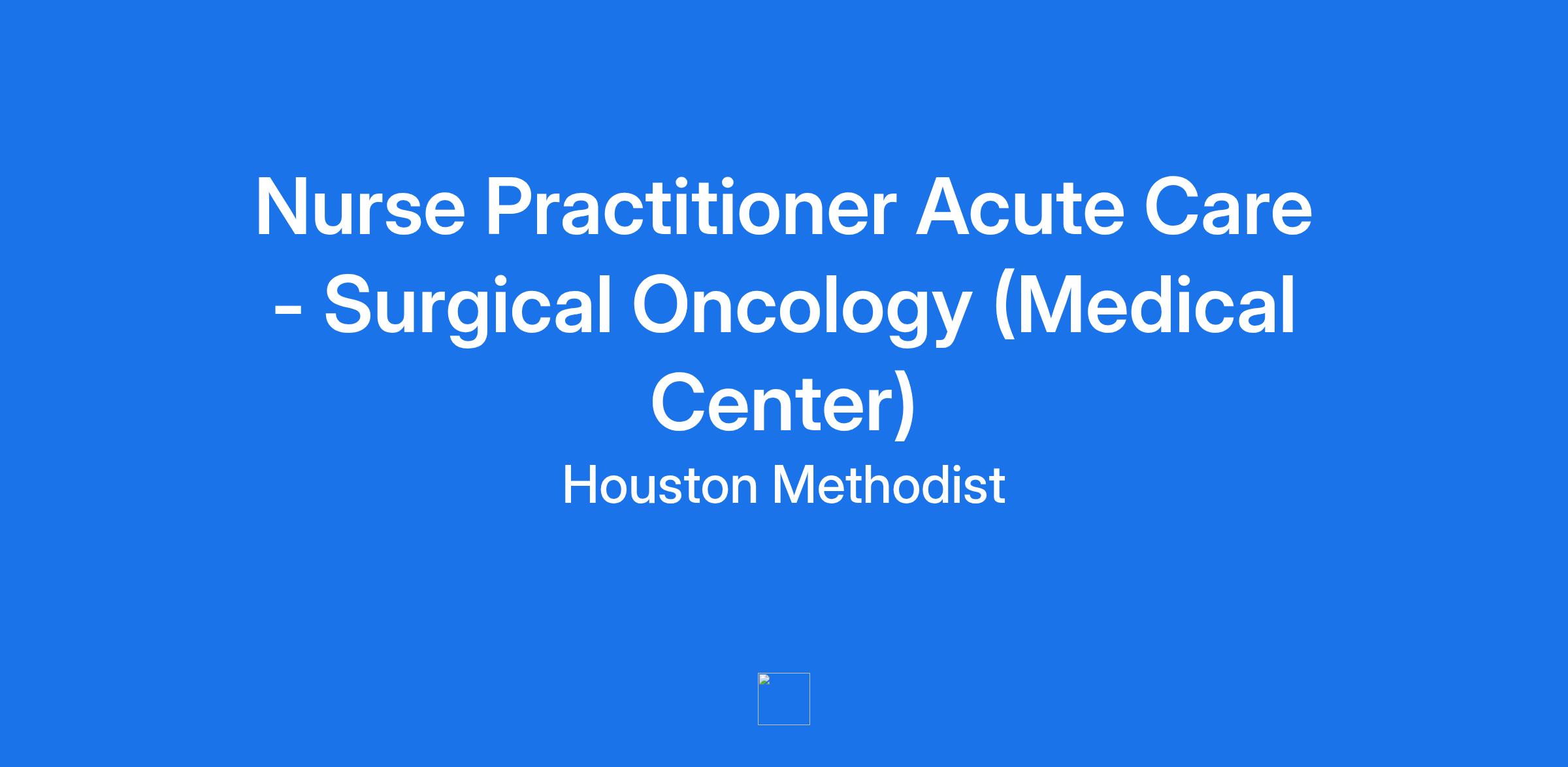 Nurse Practitioner Acute Care - Surgical Oncology (Medical Center)