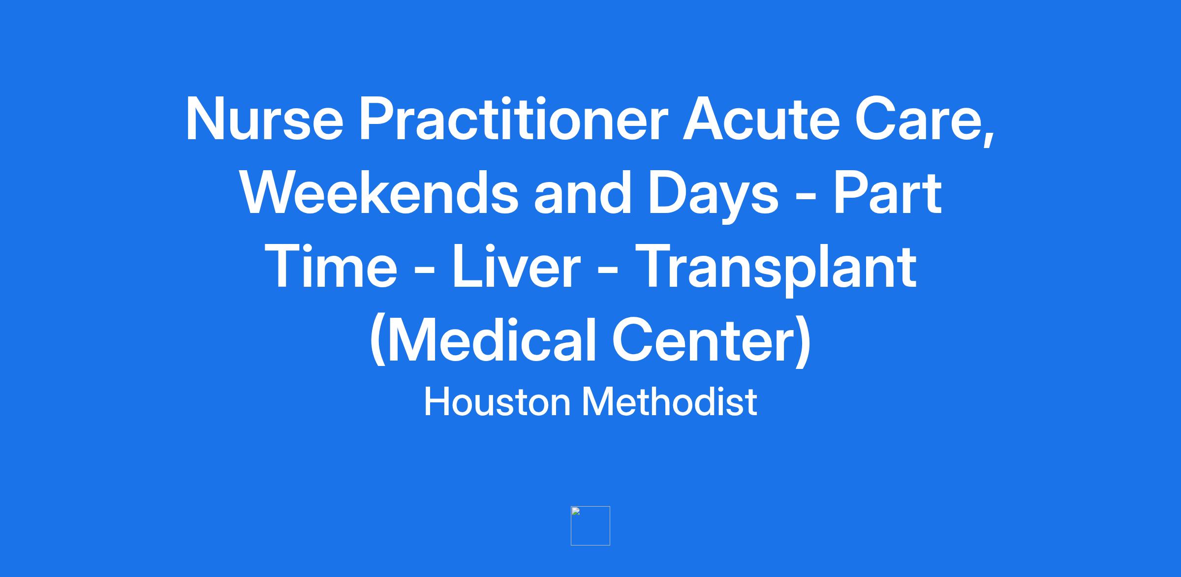 Nurse Practitioner Acute Care, Weekends and Days - Part Time - Liver - Transplant (Medical Center)
