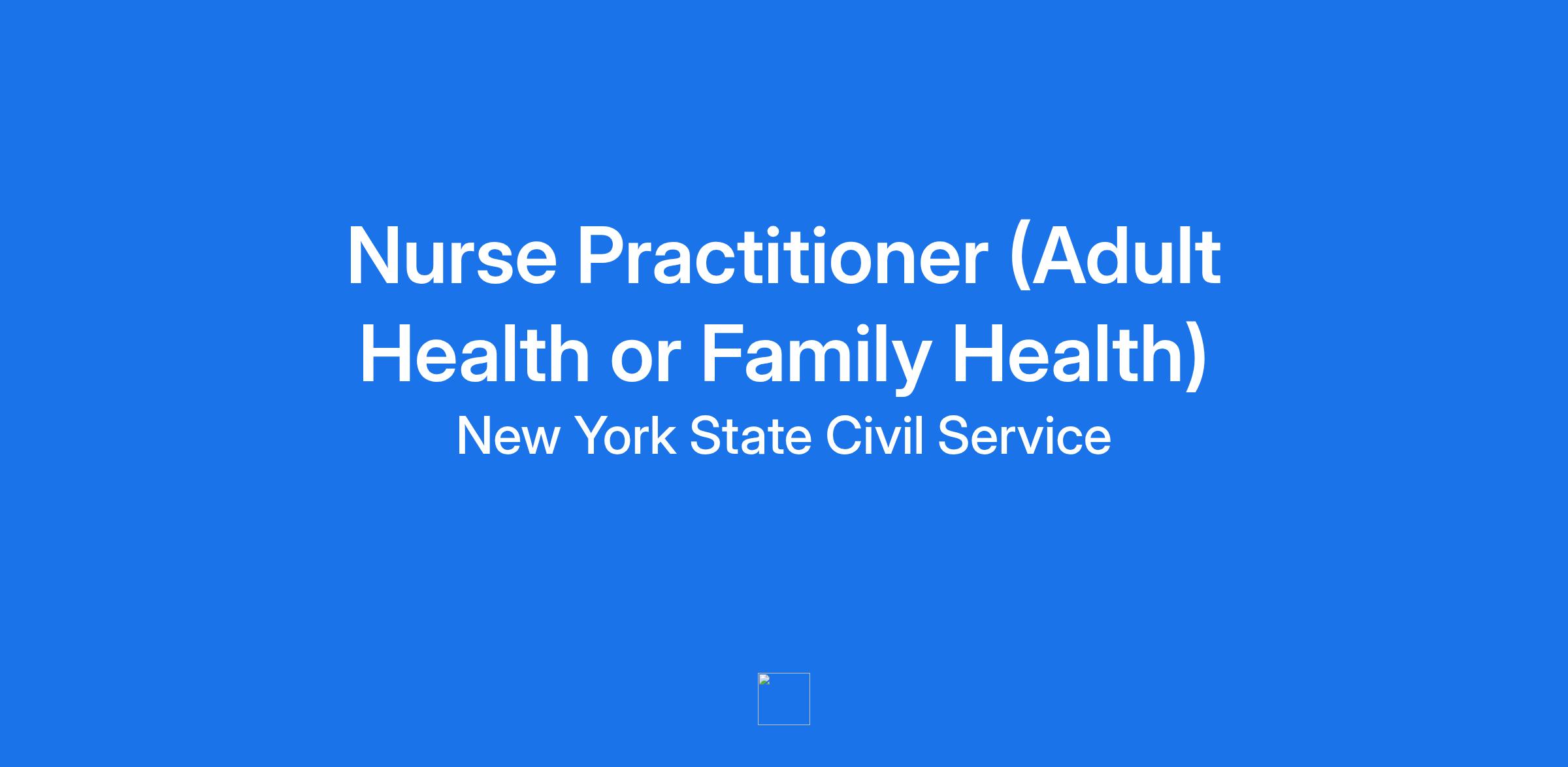 Minimum Qualifications On or before the date of filing your application, you must be certified and currently registered as a Nurse Practitioner in a specialty** practice area by the New York State Education DepartmentRequirement for prescribing medication: You must meet the current requirements as prescribed by the New York State Board of Nursing.**Specialty area must coincide with the scope of practice performed by an incumbent; this denotes the appropriate parenthetic.