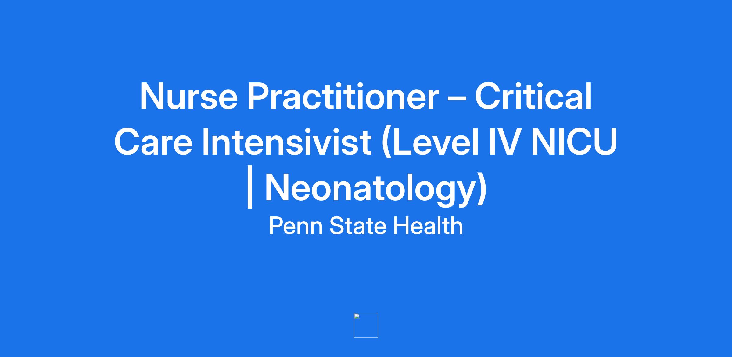 Penn State Health Children’s Hospital is seeking a Neonatal Nurse Practitioner – Critical Care Intensivist to join our outstanding Neonatal-Perinatal Medicine team in our Level IV Neonatal Intensive Care Unit (NICU) — the only Level IV NICU in central Pennsylvania.