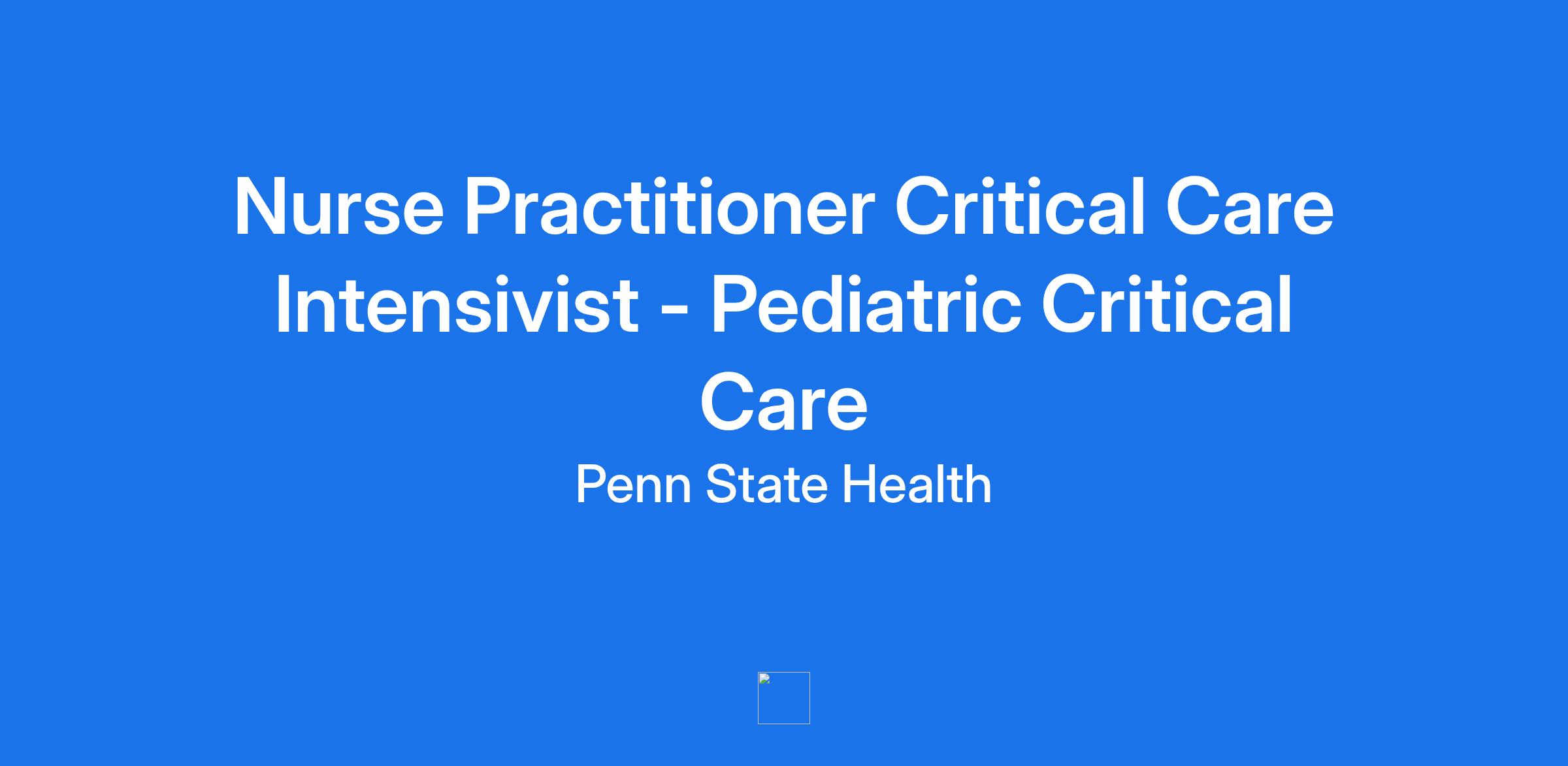Nurse Practitioner Critical Care Intensivist - Pediatric Critical Care