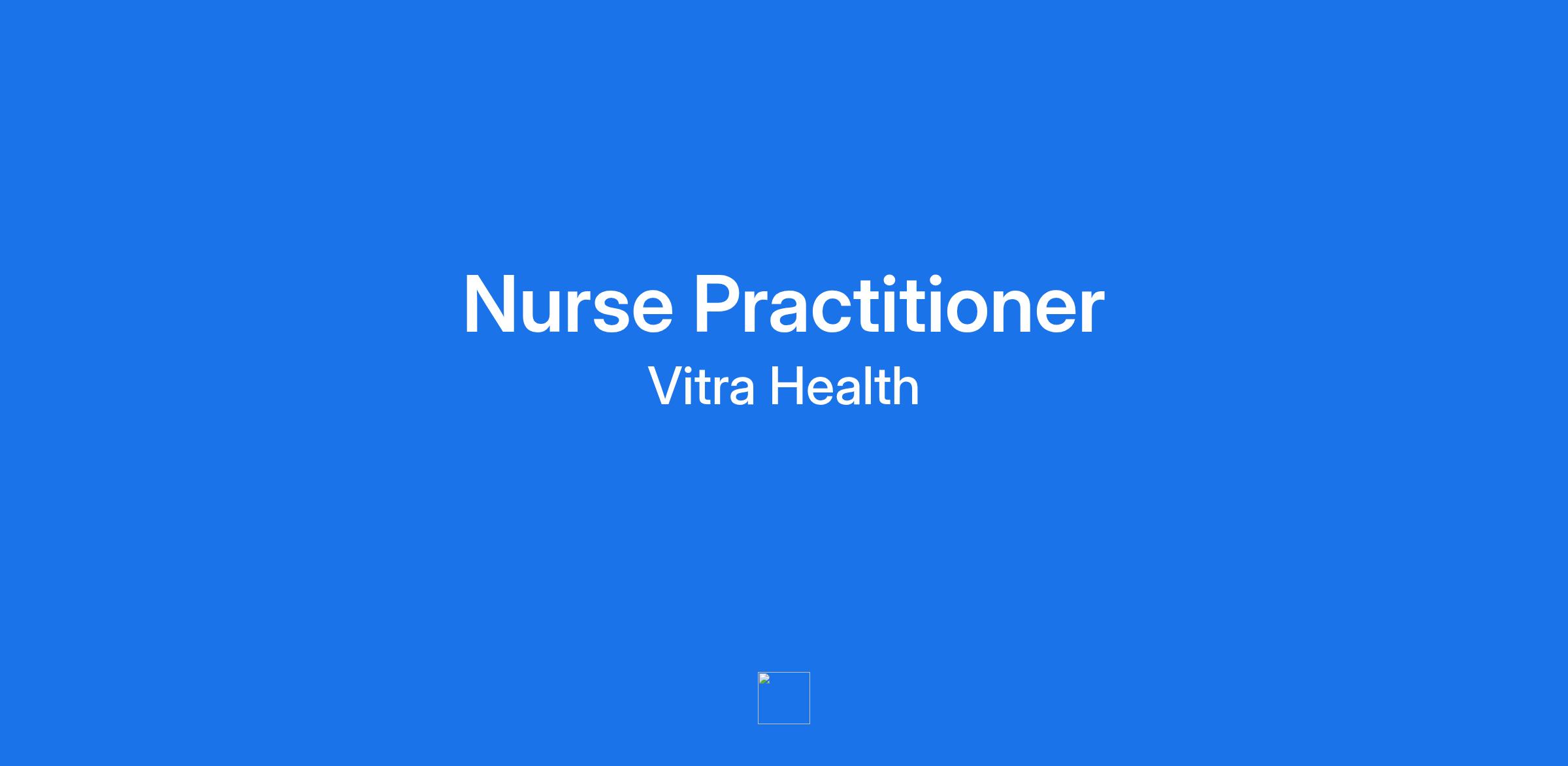 VITRA Health is hiring, and we believe that our team is the key to our success. That is why we are looking for a Nurse Practitioner to join our team. If you're a passionate, caring, motivated professional who is looking to make a difference in your community, we encourage you to apply today!